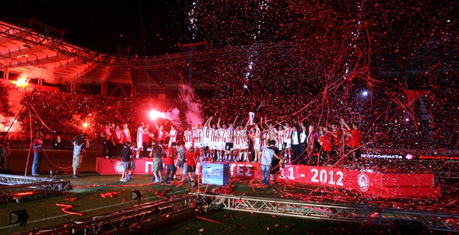 Οι νταμπλούχοι Ελλάδος για τη σεζόν 2011-2012 πανηγύρισαν την κατάκτηση του Πρωταθλήματος και του Κυπέλλου με ένα αγώνα γιορτή στο «Γ. Καραϊσκάκης» απέναντι στον Ερυθρό Αστέρα.