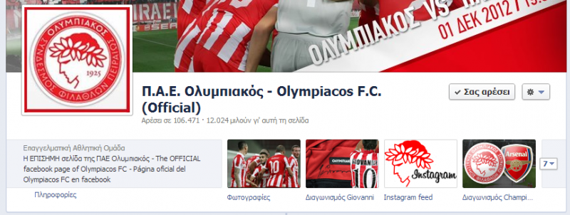 1. Κάνετε Like τη επίσημη σελίδα του Ολυμπιακού στο facebook (πατήστε ΕΔΩ).