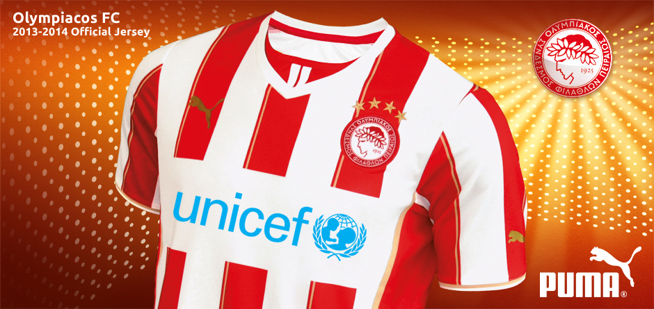 Οι νέες φανέλες και όλος ο προπονητικός ιματισμός της ομάδας μας για την αγωνιστική περίοδο 2013 -2014 είναι διαθέσιμα από τα επίσημα καταστήματα του ΟΛΥΜΠΙΑΚΟΥ Red Stores («Στάδιο Γ. Καραϊσκάκης» & Μοναστηράκι), από το www.redstore.gr & το δίκτυο επίσημων συνεργατών της PUMA.