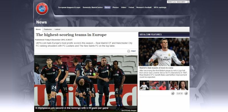 Συχνά-πυκνά γίνονται από τον ευρωπαϊκό Τύπο αναφορές στην επιθετική λειτουργία του Ολυμπιακού και το γεγονός ότι οι «ερυθρόλευκοι» είναι ανάμεσα στους κορυφαίους και σε αυτό τον τομέα! Το μεσημέρι της Παρασκευής η επίσημη ιστοσελίδα της UEFA φιλοξένησε αφιέρωμα με τις κορυφαίες επιθέσεις της Ευρώπης και ο Ολυμπιακός ήταν, φυσικά, παρών!