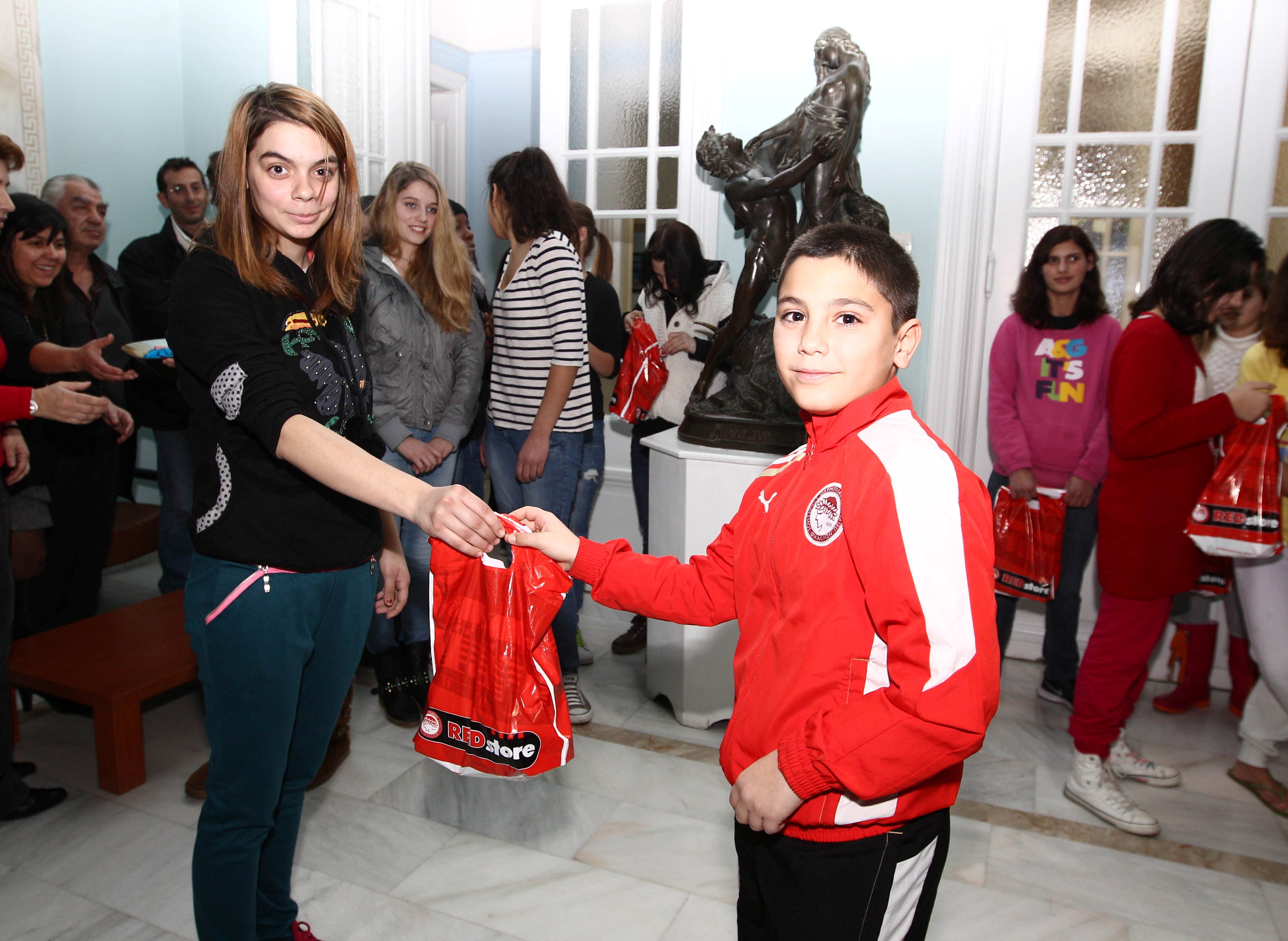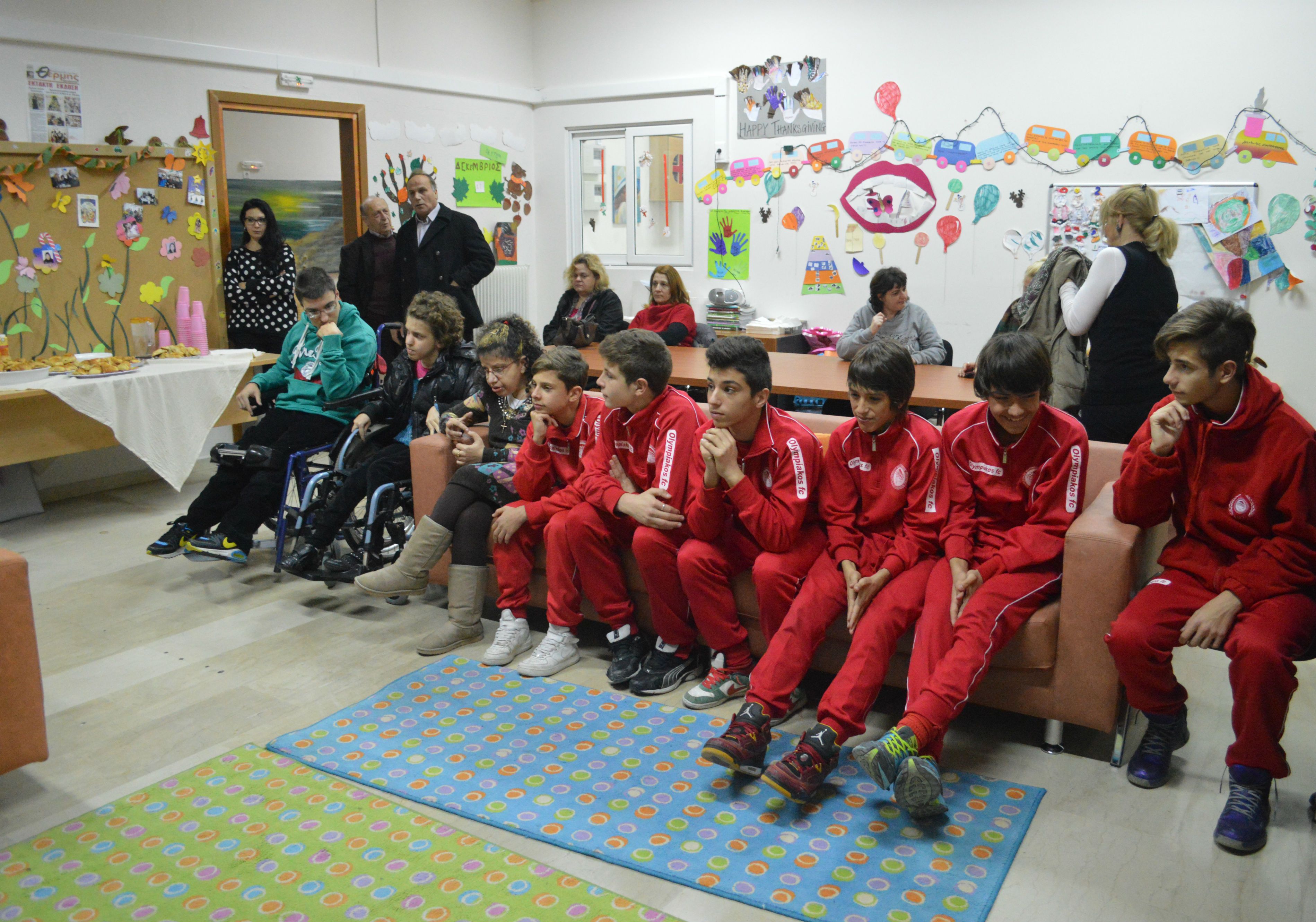 Τα παιδιά της σχολής, καθώς και αντιπροσωπεία της, έγιναν δεκτοί με ενθουσιασμό, καθώς η ΠΑΕ Ολυμπιακός αποτελεί έναν από τους υποστηρικτές του ιδρύματος που απευθύνεται σε παιδιά και εφήβους με νοητική και κινητική αναπηρία.