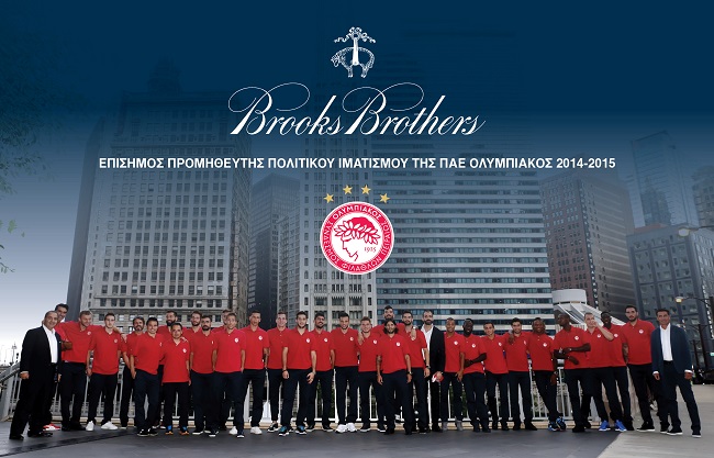 Επισφραγίζοντας μια επιτυχημένη συνεργασία που ανανεώθηκε για τρίτη συνεχή χρονιά (αθλητική σεζόν 2014-2015), η Brooks Brothers εξασφάλισε το κατάλληλο casual chic look για την αποστολή του Ολυμπιακού που συμμετείχε σε ένα από τα πιο φημισμένα τουρνουά ποδοσφαίρου, το GUINNESS International Champions Cup 2014. H στολή της ομάδας περιελάμβανε κόκκινο βαμβακερό polo μπλουζάκι – από την περίφημη συλλογή της Brooks Brothers -με κεντημένο το σήμα της ομάδας (με τα τέσσερα αστέρια που ιστορούν την μέχρι τώρα θρυλική πορεία της), καθώς και βαμβακερό παντελόνι σε Navy Blue απόχρωση από τη μοναδική συλλογή των chinos της Brooks Brothers.