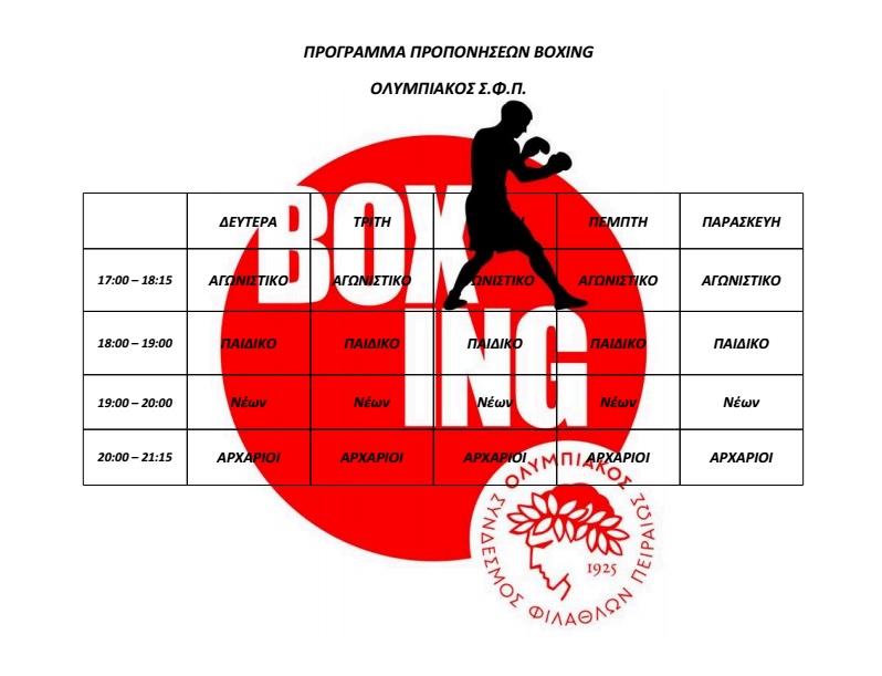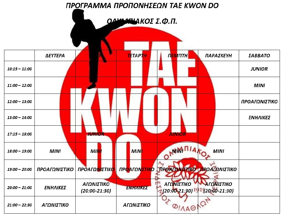 Την Δευτέρα 25 Αυγούστου ξεκινούν οι εγγραφές στα τμήματα των Πολεμικών Τεχνών του Ολυμπιακού τα οποία στεγάζονται στην εμπορική στοά του «Γ. Καραϊσκάκης». Οι εγγραφές στο Ταε Κβο Ντο, στην Πυγμαχία και στο Κικ Μπόξινγκ θα γίνονται καθημερινά (17:00-20:00) στις εγκαταστάσεις μας στο «Γ. Καραϊσκάκης».