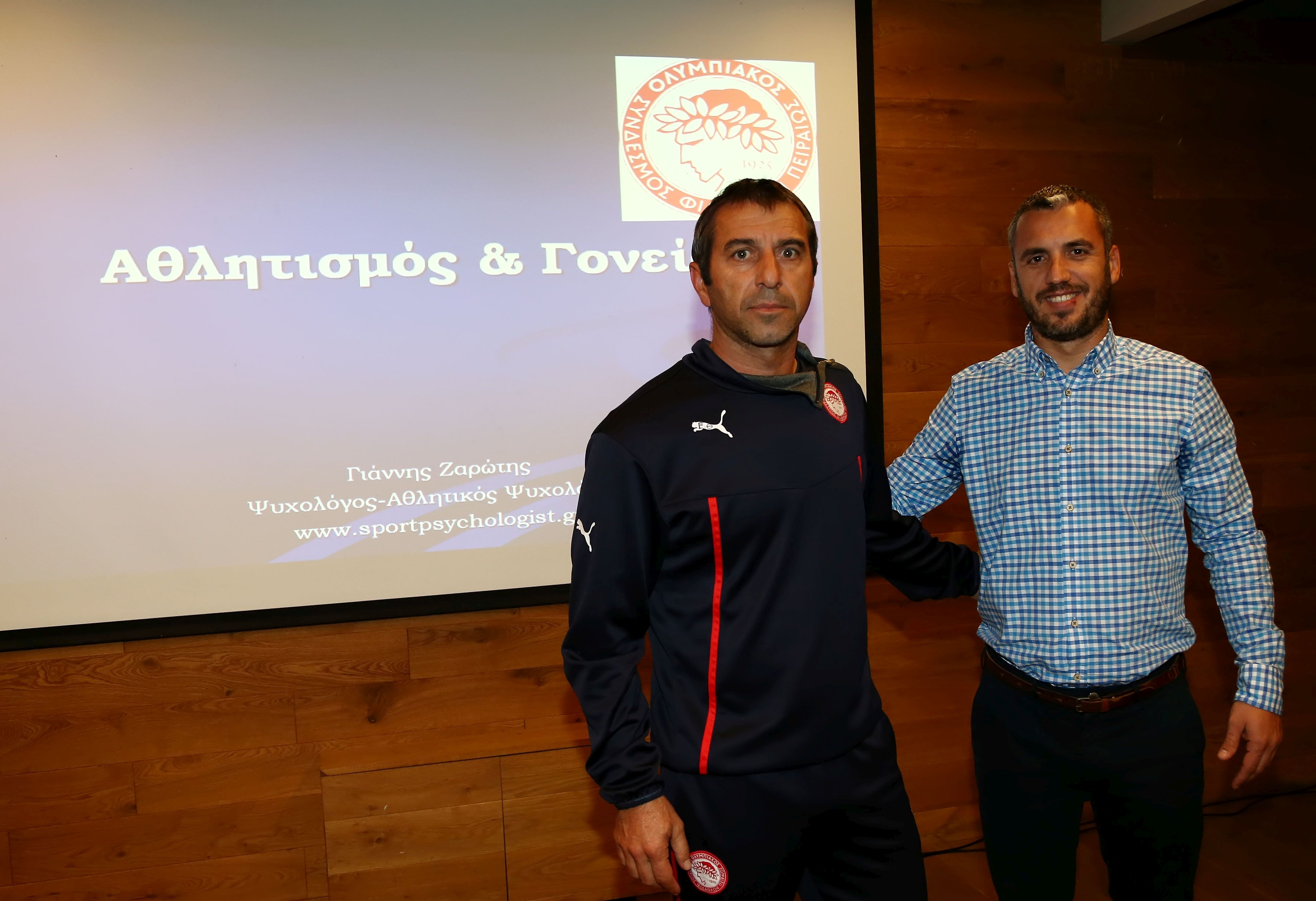 Στην αίθουσα του εστιατορίου «V’ ammos», στο «Γεώργιος Καραϊσκάκης» πραγματοποιήθηκε την Παρασκευή η πρώτη συνάντηση των γονέων των αθλητών των αγωνιστικών τμημάτων Κ11, Κ12, Κ13 και Κ14 με τον αθλητικό ψυχολόγο κ. Γιάννη Ζαρώτη.