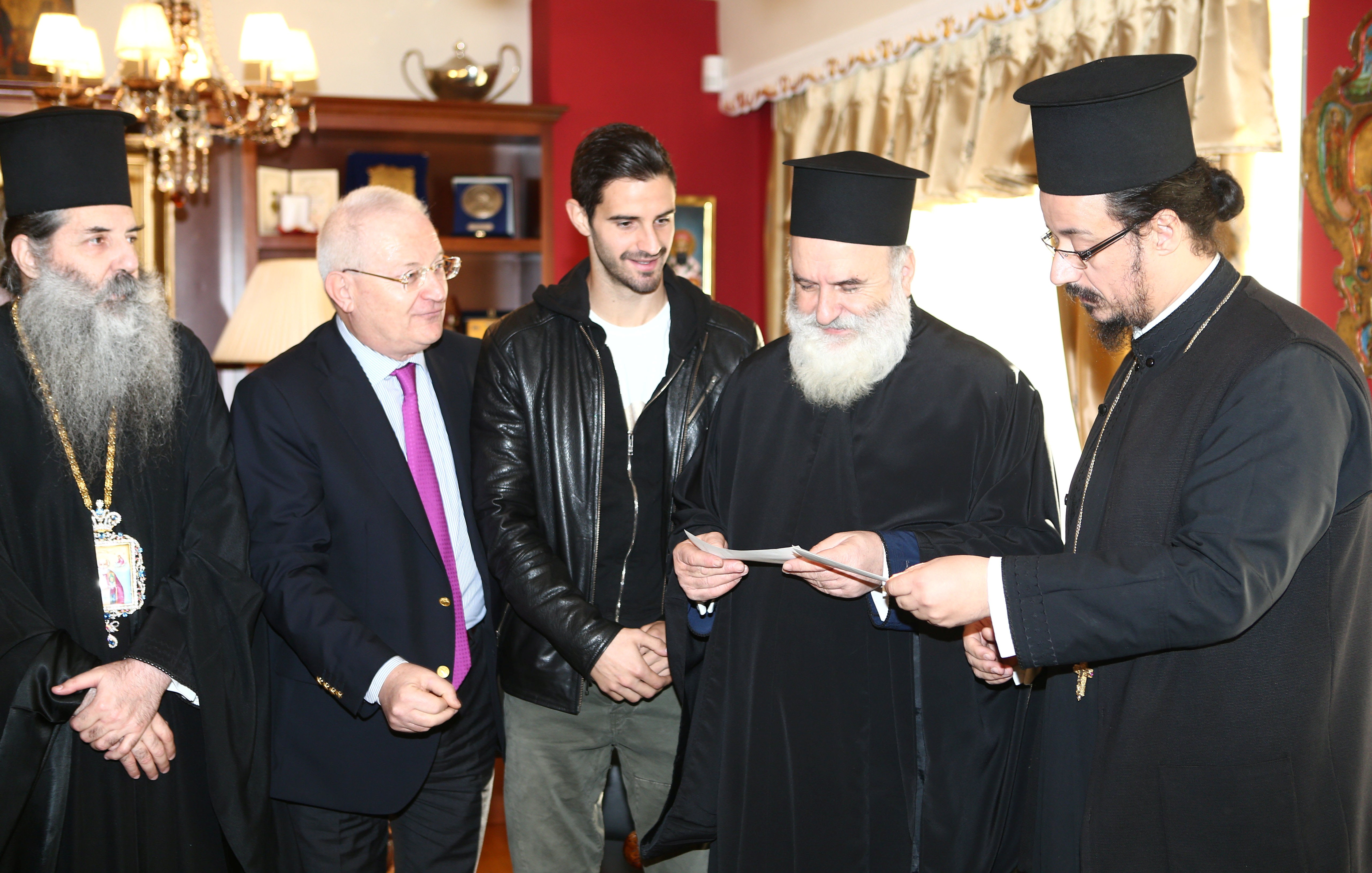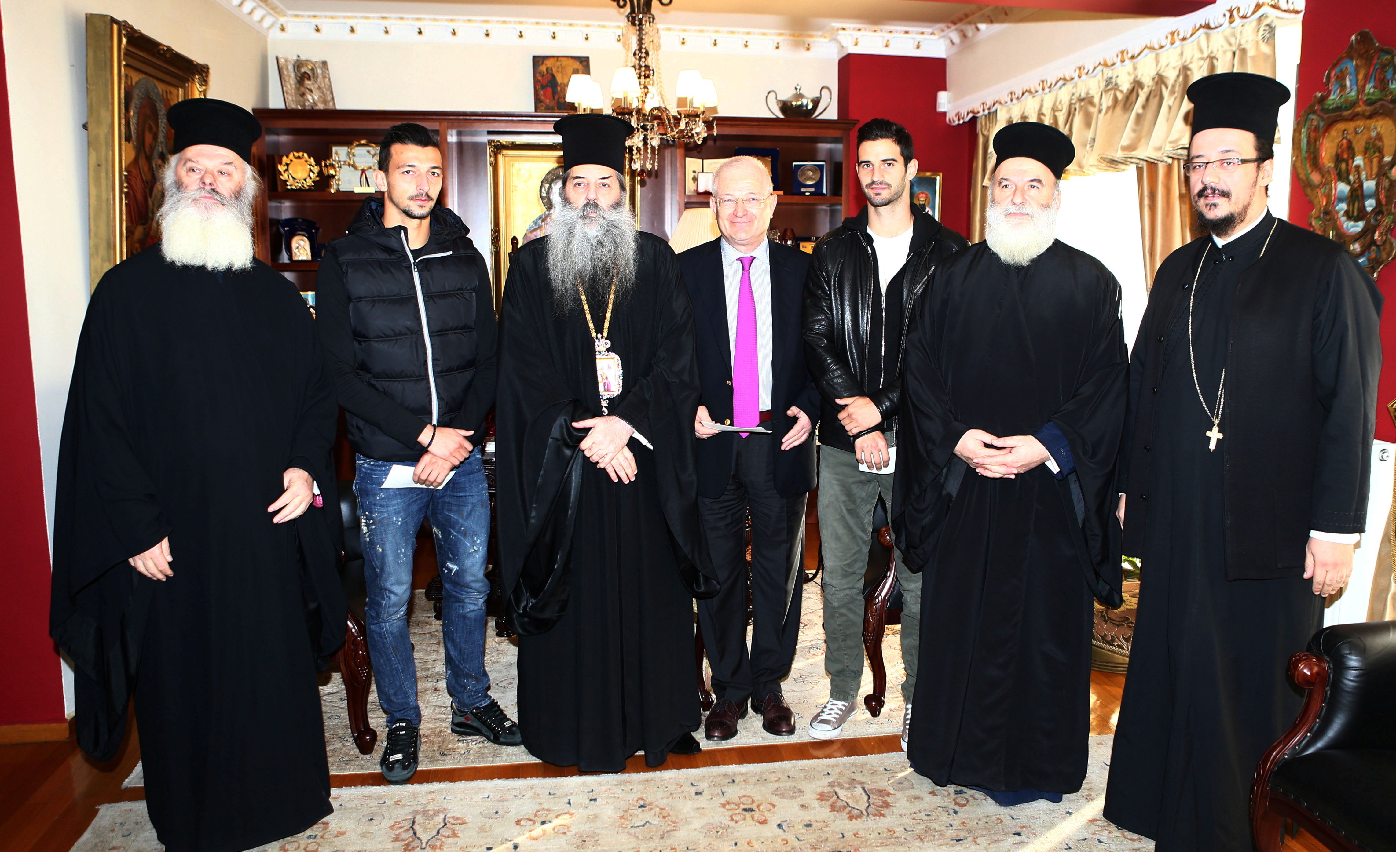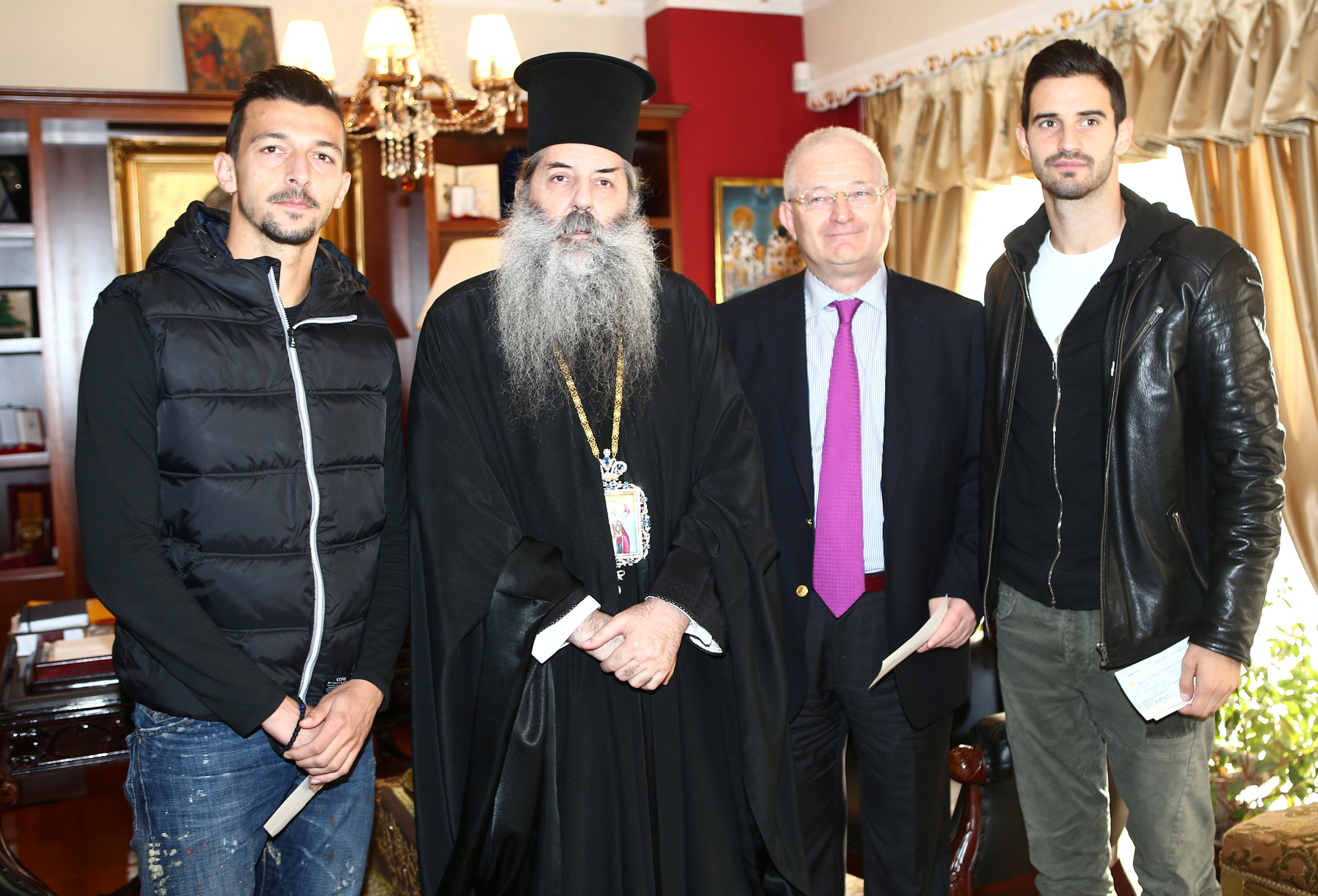 Σήμερα το πρωί λοιπόν, το παρών στα Γραφεία της Ιεράς Μητρόπολης Πειραιά έδωσαν οι ποδοσφαιριστές της ομάδας μας Τάσος Αυλωνίτης και Κώστας Γιαννούλης και ο Διευθύνων Σύμβουλος της Καραϊσκάκης Α.Ε., κ. Βασίλης Βασιλειάδης που είχαν θερμή συνάντηση με τον Μητροπολίτη Πειραιά, Σεβασμιότατο κκ. Σεραφείμ.