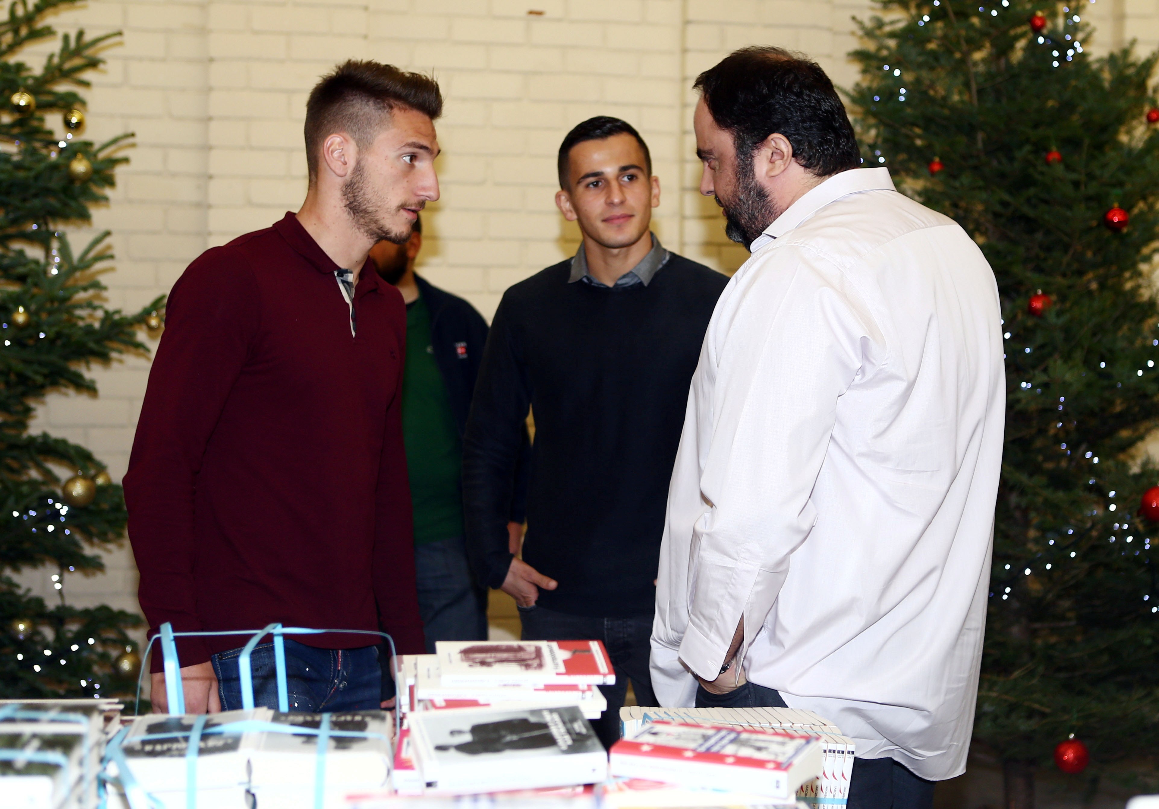 Ο Πρόεδρος του Ολυμπιακού, αλλά και οι ποδοσφαιριστές μας, αγορασαν βιβλία από το bazaar, προκειμένου να στηρίξουν έμπρακτα και όχι μόνο με την παρουσία τους, τους άπορους του Πειραιά.