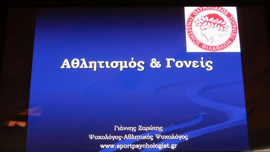 Στο πλαίσιο του προγράμματος επιστημονικής επιμόρφωσης των γονέων και των παιδιών του Δικτύου μας πραγματοποιήθηκε το απόγευμα της Τετάρτης σεμινάριο Αθλητικής Ψυχολογίας στις εγκαταστάσεις της Σχολής μας στο Μαρούσι. Ο συνεργάτης της Ακαδημίας του Ολυμπιακού, Αθλητικός Ψυχολόγος κ. Γιάννης Ζαρώτης ανέπτυξε τις βασικές αρχές συμπεριφοράς και απάντησε σε πλήθος ερωτήσεων που έγιναν από τους γονείς. Ο κ. Ζαρώτης αναφέρθηκε εκτενώς στα λάθη των γονέων και στην πίεση που μεταφέρουν στα παιδιά τους πριν αλλά και μετά από τους αγώνες.