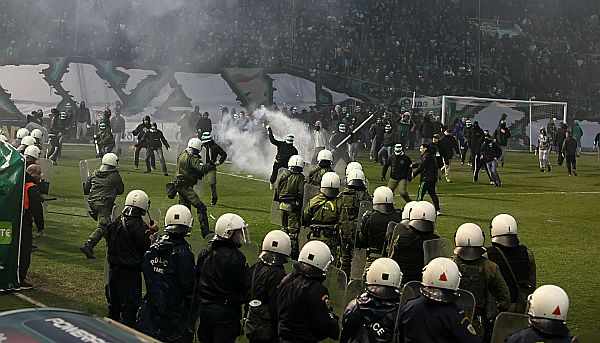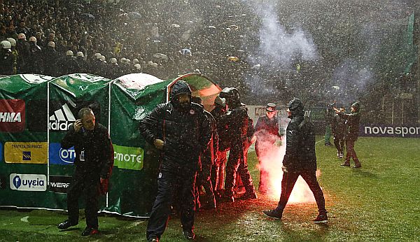 Το γκολ του «Τσόρι», από ωραία κομπίνα σε φάουλ, στις καθυστερήσεις, οι παίκτες του Ολυμπιακού δεν μπόρεσαν καν να το πανηγυρίσουν, αφού οι φωτοβολίδες έφυγαν και πάλι… βροχή! Το ματς έληξε. Ένα ματς που δεν θα έπρεπε καν να αρχίσει! Με πέντε λεπτά καθυστερήσεις και με τους «ερυθρόλευκους» να τραυματίζονται!