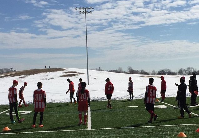 Ούτε το χιόνι, ούτε το κρύο δεν στάθηκε εμπόδιο στην προετοιμασία των ομάδων της Σχολής μας στο Σικάγο των ΗΠΑ! Η περιοχή του Ιλινόις δοκιμάζεται από έντονες χιονοπτώσεις τις τελευταίες ημέρες όμως τα παιδιά της Σχολής του Ολυμπιακού ήταν προετοιμασία για όλα. Τόσο η ομάδα Κ-14 όσο και η Κ-15 συνέχισαν κανονικά την προετοιμασία τους για το κύπελλο της περιοχής που αρχίζει την επόμενη εβδομάδα και στο οποίο ο Ολυμπιακός έχει στόχο να διακριθεί και φέτος. Ο επικεφαλής της Σχολής κ. Γιάννης Κοσμάς κινητοποίησε τους πάντες για να καθαριστούν από το χιόνι τα γήπεδα και μας δήλωσε: “Είμαστε Ολυμπιακός. Δεν μας πτοεί τίποτα”.