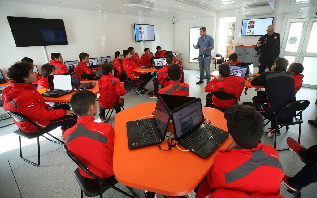 Το ειδικό εργαστήριο ενημέρωσης, «Οδυσσέας», που έχει σταθμεύσει έξω από το Δημοτικό Θέατρο του Πειραιά επισκέφτηκαν το μεσημέρι της Τετάρτης τα μέλη των ομάδων Κ-13, Κ-14 της Ακαδημίας του Ολυμπιακού με σκοπό να μάθουν από τους επιστήμονες που συνεργάζονται με το «Χαμόγελο του Παιδιού» για θέματα που αφορούν την βία σε παιδιά, τον Σχολικό Εκφοβισμό και τους τρόπους αντιμετώπισης.