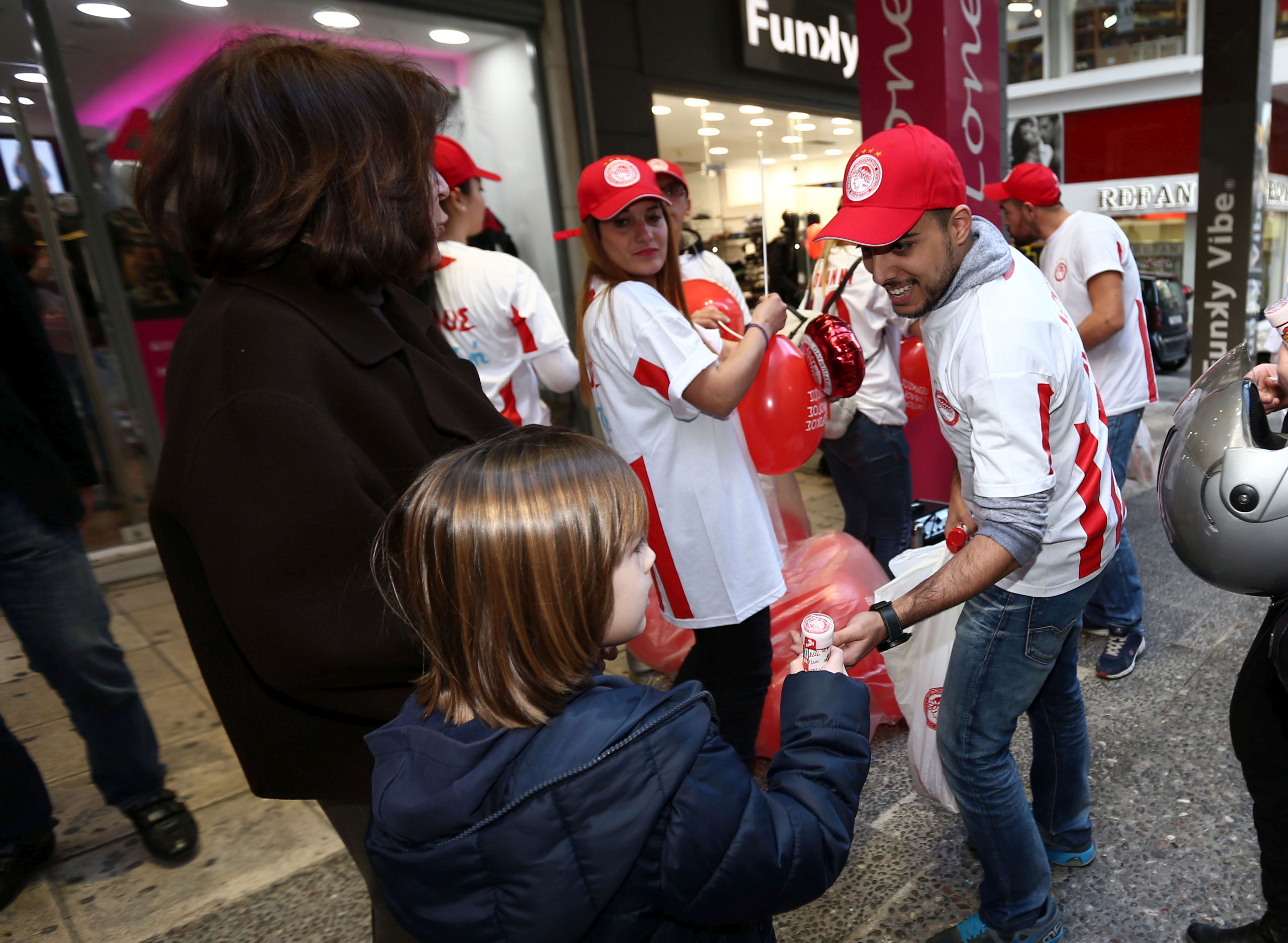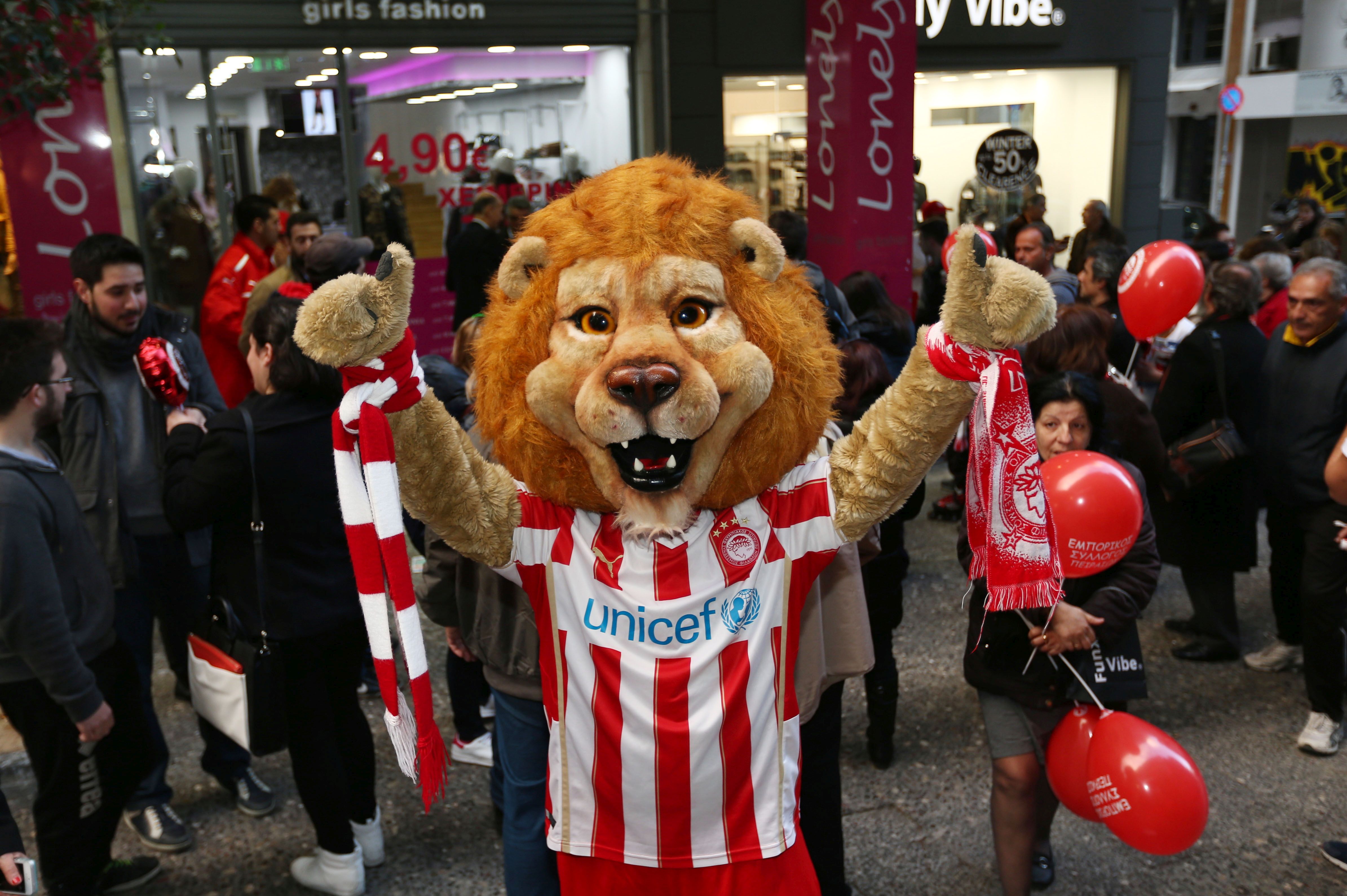 Ακόμα ομάδα με animateurs και μουσική φορώντας T-Shirts και καπελάκια του Ολυμπιακού προσέφερε δώρα της ομάδας και μπάλες με τις υπογραφές των παικτών (βρίσκονταν σε κεντρικά σημεία και συγκεκριμένα Τσαμαδού & Κολοκοτρώνη, Μπουμπουλίνας & Καραΐσκου, Βασ. Γεωργίου & Κουντουριώτου, Σωτήρος & Καραΐσκου). Παράλληλα σε κεντρικό σημείο της πόλης βρίσκονταν Βετεράνοι ποδοσφαιριστές του Ολυμπιακού, οι οποίοι υπέγραφαν αυτόγραφα στον κόσμο. Μοιράστηκαν δώρα σε όλα τα παιδιά που ήταν στην αγορά την ημέρα των γενεθλίων του Ολυμπιακού, ενώ έγιναν και κληρώσεις δώρων του Ολυμπιακού. Σε όλη την διάρκεια των εκδηλώσεων βρισκόταν και η μασκότ της ομάδας μας, ο Λεόνε.