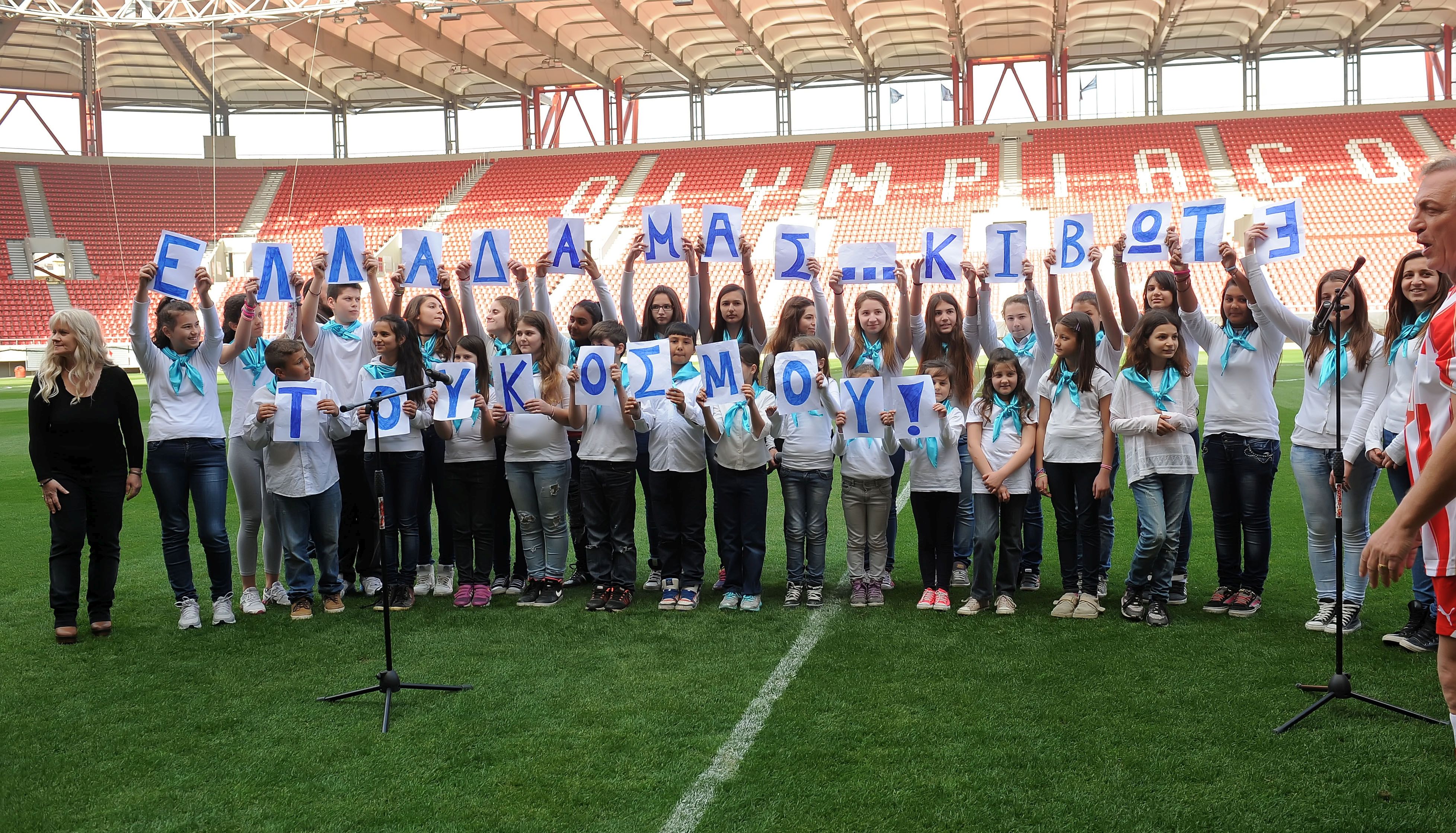 Η ομάδα των «Σταθερών Συγκοινωνιών» νομίζω σήμερα θα χαράξει για καλά στην μνήμη της αυτά που ζούμε σήμερα εδώ στο θρυλικό γήπεδο Καραϊσκάκη. Το γήπεδο που έχει γράψει ο Ολυμπιακός τα 90 χρόνια της θρυλικής του ιστορίας. Αξίζουν θερμά συγχαρητήρια σε όλους όσους είναι σήμερα εδώ γι’ αυτόν τον ιερό πραγματικά σκοπό. Ένα σκοπό, ο οποίος την Μεγάλη Εβδομάδα, θα έχει μεγάλο αποτέλεσμα για όλα αυτά τα παιδιά που τόσο μας έχουν ανάγκη. Ζήτω ο Ολυμπιακός. Χρόνια πολλά σε όλο τον κόσμο».