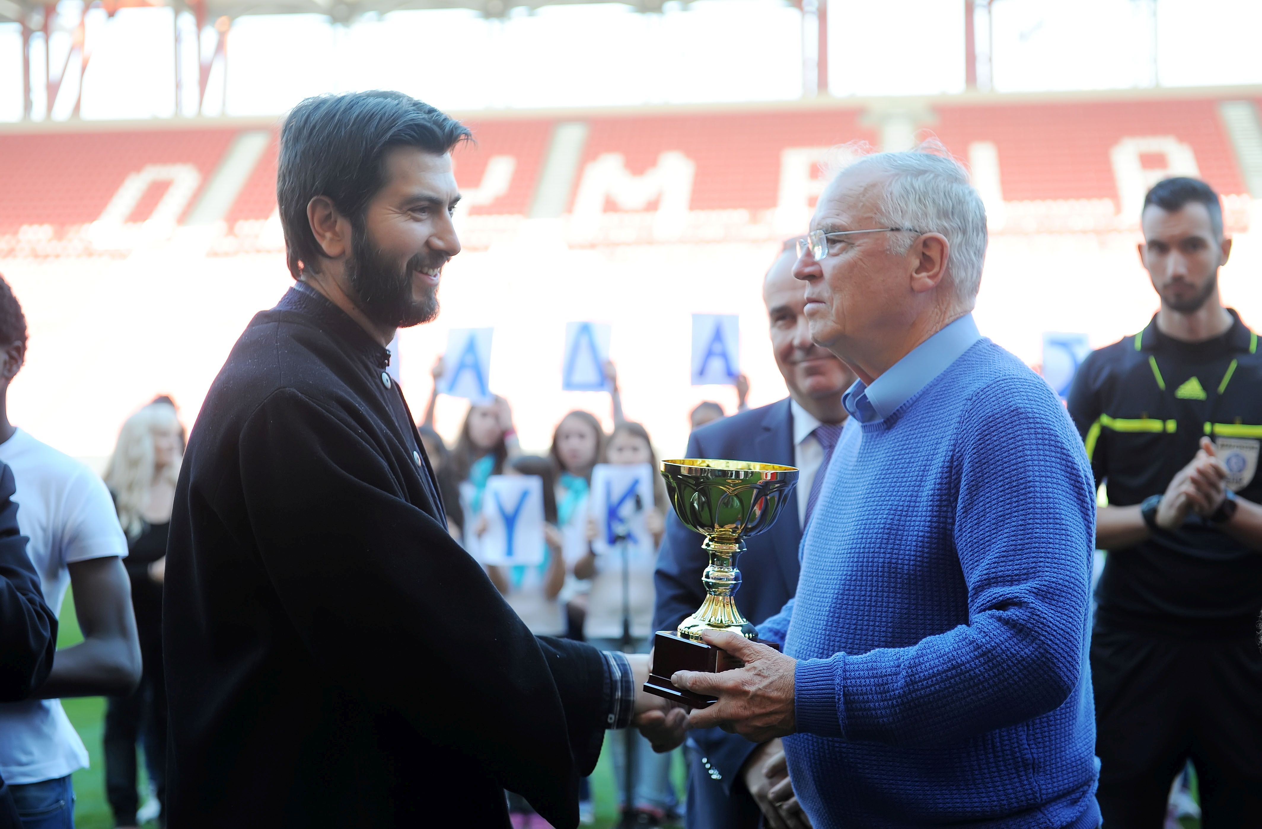 Πριν την έναρξη του μεγάλου αγώνα, έλαβαν χώρα τιμητικές διακρίσεις! Η ΣταΣυ τίμησε τον Πρόεδρο του Ολυμπιακού, κ. Μαρινάκη! Έκανε το ίδιο και για τον Αντιπρόεδρο του Ολυμπιακού, κ. Σάββα Θεοδωρίδη, ο οποίος έδωσε επίσης το παρών και παρέλαβε το κύπελλο και για τον Πρόεδρό μας. Μάλιστα, ο κ. Θεοδωρίδης παρέδωσε με τη σειρά του το επίσημο Κύπελλο τον Βετεράνων, στον πατέρα Αντώνιο, ενώ ο πρόεδρος του Συνδέσμου Βετεράνων Ολυμπιακού, κ. Δαρίβας, τίμησε τον πρόεδρο της ΣταΣυ, κ. Παπαθανάση. Τιμήθηκε ο Σύμβουλος Στρατηγικής της Διοίκησης, Κριστιάν Καρεμπέ, ο οποίος μάλιστα αγωνίστηκε και ως αρχηγός της ομάδας των Βετεράνων, ενώ τιμήθηκε φυσικά και η ομάδα της ΣταΣυ, όπως και ο αρχηγός της, Θάνος Παπασωτηρίου. Η ΣταΣυ με τη σειρά της τίμησε τον Γιώργο Δαρίβα, ενώ βράβευσε και τον Δήμαρχο Πειραιά, κ. Γιάννη Μώραλη, ο οποίος έδωσε το εναρκτήριο λάκτισμα του αγώνα!