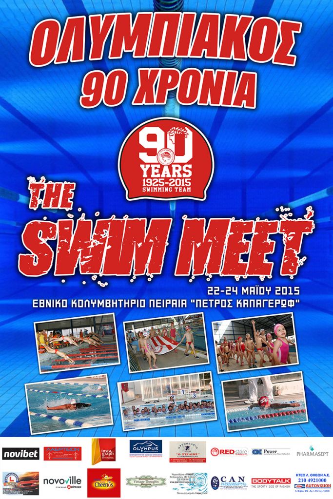 Με την Κολυμβητική διοργάνωση «ΟΛΥΜΠΙΑΚΟΣ Σ.Φ.Π. 90 ΧΡΟΝΙΑ» θα γιορτάσει το τμήμα Κολύμβησης του Ολυμπιακού τη συμπλήρωση 90 χρόνων από την ίδρυση του συλλόγου. Η διοργάνωση θα ξεκινήσει την Παρασκευή (22/5) θα ολοκληρωθεί την Κυριακή και θα διεξαχθεί στο «Π. Καπαγέρωφ» και θα λάβουν μέρος περισσότεροι από 1.000 αθλητές προερχόμενοι από περισσότερους από 50 συλλόγους από όλη την Ελλάδα. Από πλευράς Ολυμπιακού το παρών θα δώσει σύσσωμο το αγωνιστικό και προαγωνιστικό τμήμα αποτελούμενο από 100 κολυμβητές. Στην Κολυμβητική διοργάνωση ο Ολυμπιακός θα παρουσιάσει αρκετές καινοτομίες αναφορικά με το αγωνιστικό και το οργανωτικό κομμάτι.