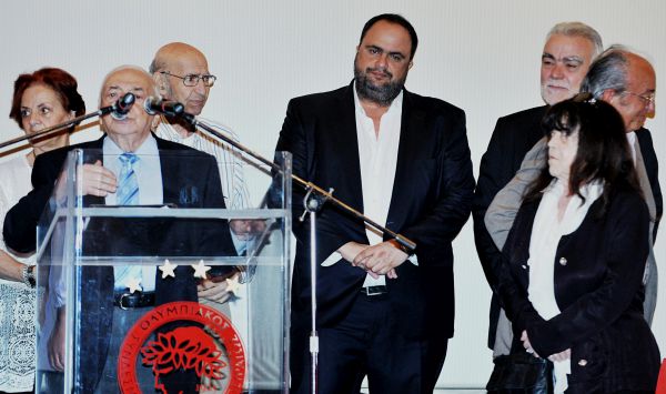 Ο Ολυμπιακός μετουσιώθηκε σε Θρύλο και αυτό δεν το όφειλε μόνο στην τεράστια λαϊκή στήριξη. Σήμερα, σύμφωνα με πρόσφατη δημοσκόπηση, τα 2/3 των φιλάθλων στον ελλαδικό χώρο και τα 3/4 των φιλάθλων στην ομογένεια, ανήκουν στην παράταξη του Θρύλου. Δεν το οφείλει μόνο στους εκλεκτούς τεχνικούς ηγέτες που είχε κατά καιρούς και στο θαυμάσιο έμψυχο υλικό (σήμερα υπάρχουν μεταξύ μας εδώ κάποιοι θρύλοι, όπως ο Ηλίας Ρωσίδης και άλλοι) αλλά και στους εκλεκτούς, στους σπουδαίους, στους ιμαλαϊκού αναστήματος ηγέτες του. Και θα μου επιτρέψετε, μεταξύ αυτών, να μνημονεύσω μία πεντάδα. Από τον Γεώργιο Ανδριανόπουλο, τον Νίκο Γουλανδρή, τον Σταύρο Νταϊφά, τον Σωκράτη Κόκκαλη και τον σημερινό στρατάρχη, αρχιστράτηγο του Ολυμπιακού, τον Βαγγέλη Μαρινάκη.