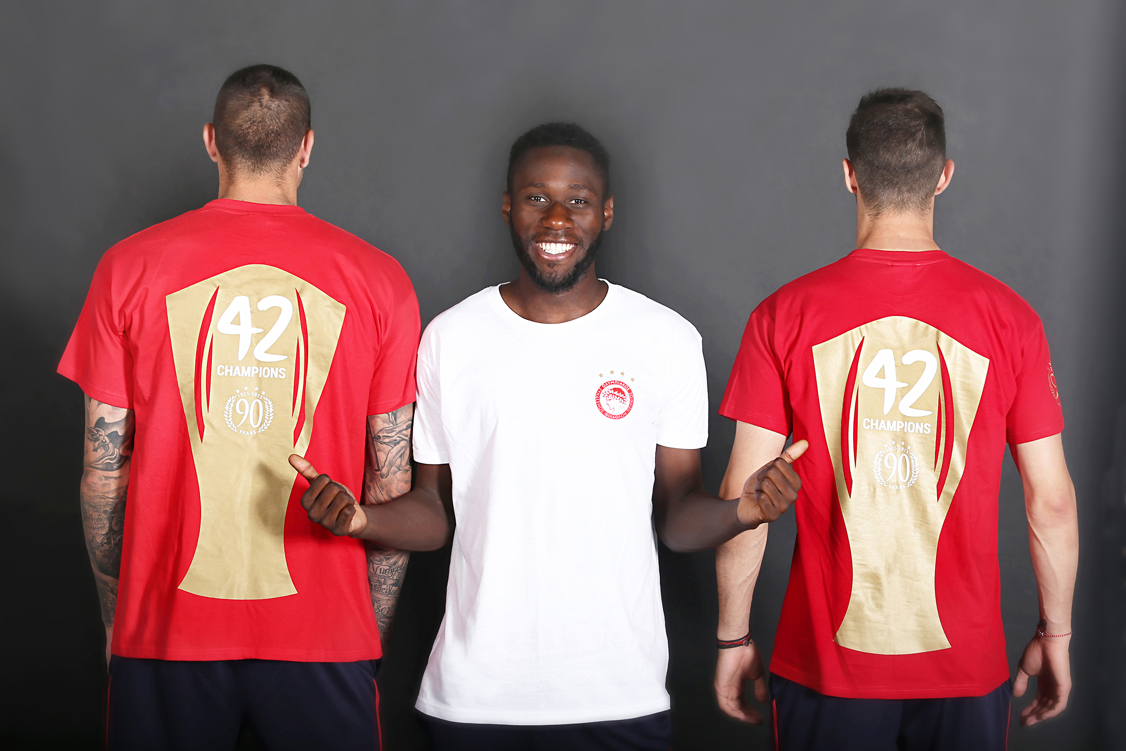 Τα είδαμε στους εορτασμούς του 42ου πρωταθλήματος της ομάδας μας, οι οποίοι έλαβαν χώρα στο «Γεώργιος Καραϊσκάκης». Τα φόρεσαν και φωτογραφήθηκαν με αυτά οι Ρομπέρτο, Μαζουακού και Αυλωνίτης, ενώ έγιναν… ανάρπαστα από το Red Store!