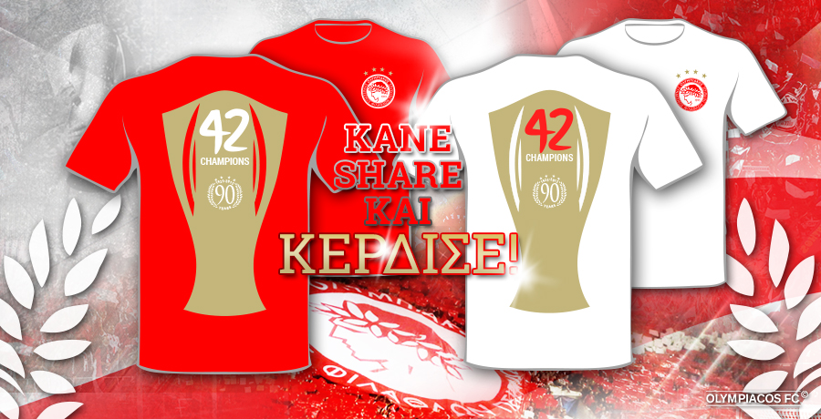Ο λόγος για τα επετειακά t-shirts του Θρύλου, για την κατάκτηση του 42ου πρωταθλήματος στην ιστορία της ομάδας μας.