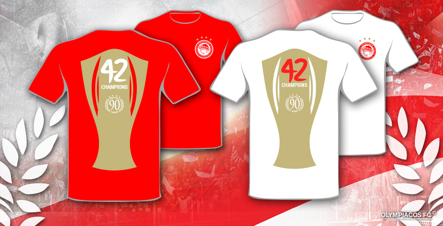 Κάθε φίλαθλος του Ολυμπιακού θα ήθελε να έχει στην συλλογή του το πανέμορφο επετειακό t-shirt, για την κατάκτηση του φετινού πρωταθλήματος της ομάδας μας και συνολικά 42ου στην ιστορία της.