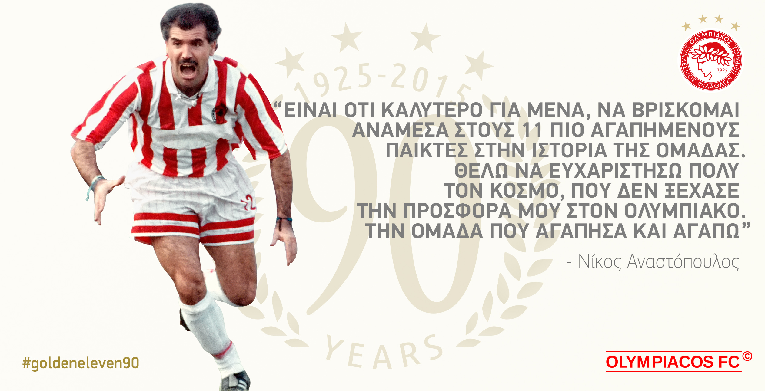 Η ψήφος του κόσμου τον ανέδειξε ανάμεσα στους 11 αγαπημένους ποδοσφαιριστές που έχουν αγωνιστεί με τον Ολυμπιακό! Ο Νίκος Αναστόπουλος, ο «μουστάκιας» του ελληνικού ποδοσφαίρου έγραψε τη δική του ξεχωριστή ιστορία με την φανέλα του Θρύλου, καθώς για πολλά χρόνια αποτελούσε την… αιχμή του δόρατος στην επιθετική γραμμή των «ερυθρόλευκων» και βρίσκεται αναμφίβολα μέσα στους κορυφαίους επιθετικούς που φόρεσαν τον «δαφνοστεφανωμένο» έφηβο στο στήθος!