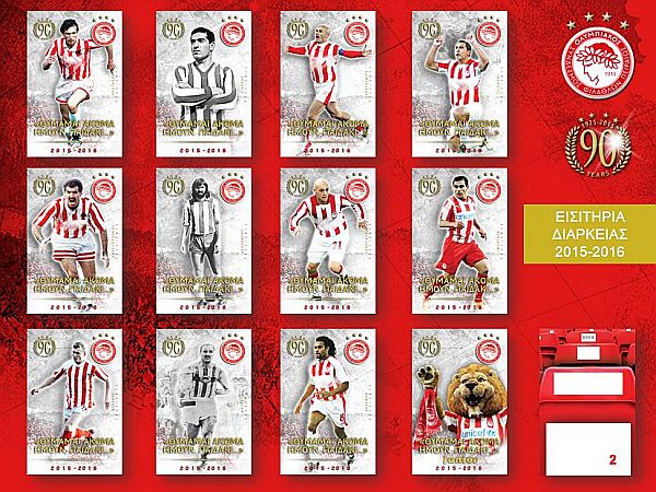 Ο κάθε φίλαθλος του Ολυμπιακού θα μπορεί να επιλέξει τη δική του κάρτα, η οποία θα έχει επάνω την εικόνα, τη φιγούρα, ενός από τους 11 τιτάνες της «χρυσής ενδεκάδας», έτσι όπως ο ίδιος ο λαός του Θρύλου την ανέδειξε! Ποδοσφαιριστές – σύμβολα της τεράστιας ιστορίας του Ολυμπιακού, όπως ο Τζιοβάνι, ο Καρεμπέ, ο Μουράτης, ο Σιδέρης, ο Τζόρτζεβιτς, αλλά και το παιδικό εισιτήριο με τον Λεόνε, θα δίνουν έναν ιδιαίτερο τόνο στην κάρτα του κάθε κατόχου διαρκείας και θα τον γεμίζουν με ακόμη περισσότερο συναίσθημα για την αγαπημένη του ομάδα!