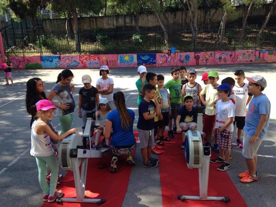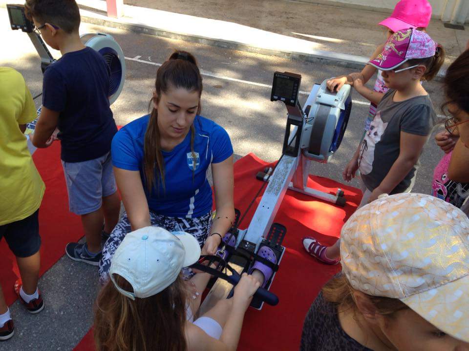 Η Αργυρή Ολυμπιονίκης Νέων- Πανελλήνια πρωταθλήτρια Κωπηλασίας και αθλήτρια του ΟΛΥΜΠΙΑΚΟΥ Σ.Φ.Π., Αθηνά Αγγελοπούλου μαζί με τον προπονητή κωπηλασίας του τμήματος coastal rowing κ. Δημοσθένη Κούβαρη επισκέφτηκαν την Πεμπτη (9/7) το καλοκαιρινό καμπ του Δήμου Πειραιά. Τα μικρά παιδιά είχαν την ευκαιρία να δοκιμάσουν την κωπηλασία έξω από το νερό, στα κωπηλατικά εργόμετρα.