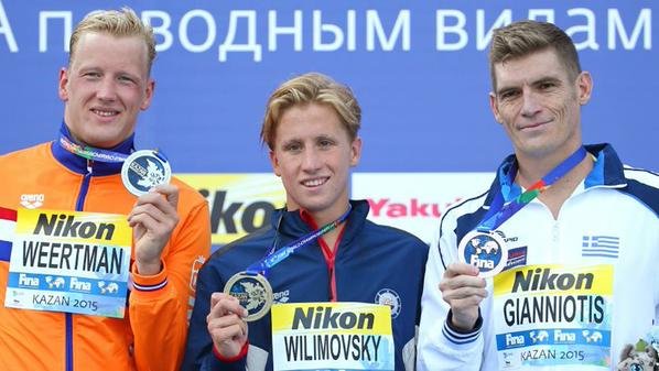 Ένα επίτευγμα το οποίο οποιοδήποτε διθυραμβικό σχόλιο το συνοδεύσει, μοιάζει «φτωχό» για να αποδώσει το μέγεθος του, είναι γεγονός από το μεσημέρι τις 27ης Ιουλίου. Συντελέστηκε στο Καζάν, εκεί όπου ο Σπύρος Γιαννιώτης εξασφάλισε για 5η φορά την παρουσία του σε Ολυμπιακούς Αγώνες, χάρη στο χάλκινο μετάλλιο που κατέκτησε στα 10χλμ. Μαραθώνιας Κολύμβησης. Ο κολυμβητής του Ολυμπιακού για 3η διαδοχική φορά ανεβαίνει στο βάθρο του Παγκοσμίου Πρωταθλήματος μετά το 2011 και το 2013 όπου είχε κερδίσει ισάριθμα χρυσά μετάλλια. Με την 3η θέση στην οποία τερμάτισε εξασφάλισε την συμμετοχή του στους Ολυμπιακούς Αγώνες του Ρίο. Έτσι μπήκε στο κλειστό κλαμπ στο οποίο βρίσκονται μόλις 6 αθλητές στο άθλημα της κολύμβησης, οι οποίοι έχουν καταφέρει να φτάσουν τις 5 συμμετοχές σε Ολυμπιακούς Αγώνες. Χάρη στη γνωστή του τακτική ο Σπύρος Γιαννιώτης κράτησε δυνάμεις μέχρι το 7ο χιλιόμετρο όταν ξεκίνησε να ανεβάζει ρυθμούς. Με συνεχείς προσπεράσεις έφτασε στην 4η θέση στο 9ο χιλιόμετρο του αγώνα και με τρόπο εντυπωσιακό άφησε πίσω του πολύ…κόσμο και ξεκίνησε τη «μονομαχία» με τον Αμερικανό Βιλμόσκι. Στο σημείο εκείνο έκανε την εμφάνισή του ο Ολλανδός Βέρτμαν ο οποίος κατάφερε να προσπεράσει τον Σπύρο Γιαννιώτη που έχασε για κλάσματα του δευτερολέπτου το αργυρό μετάλλιο. Ο έτερος ερυθρόλευκος Κολυμβητής της Εθνικής ομάδας που έλαβε μέρος στη συγκεκριμένη κούρσα, ο Αντώνης Φωκαΐδης ολοκλήρωσε στην 29η θέση με 1:51.27 .