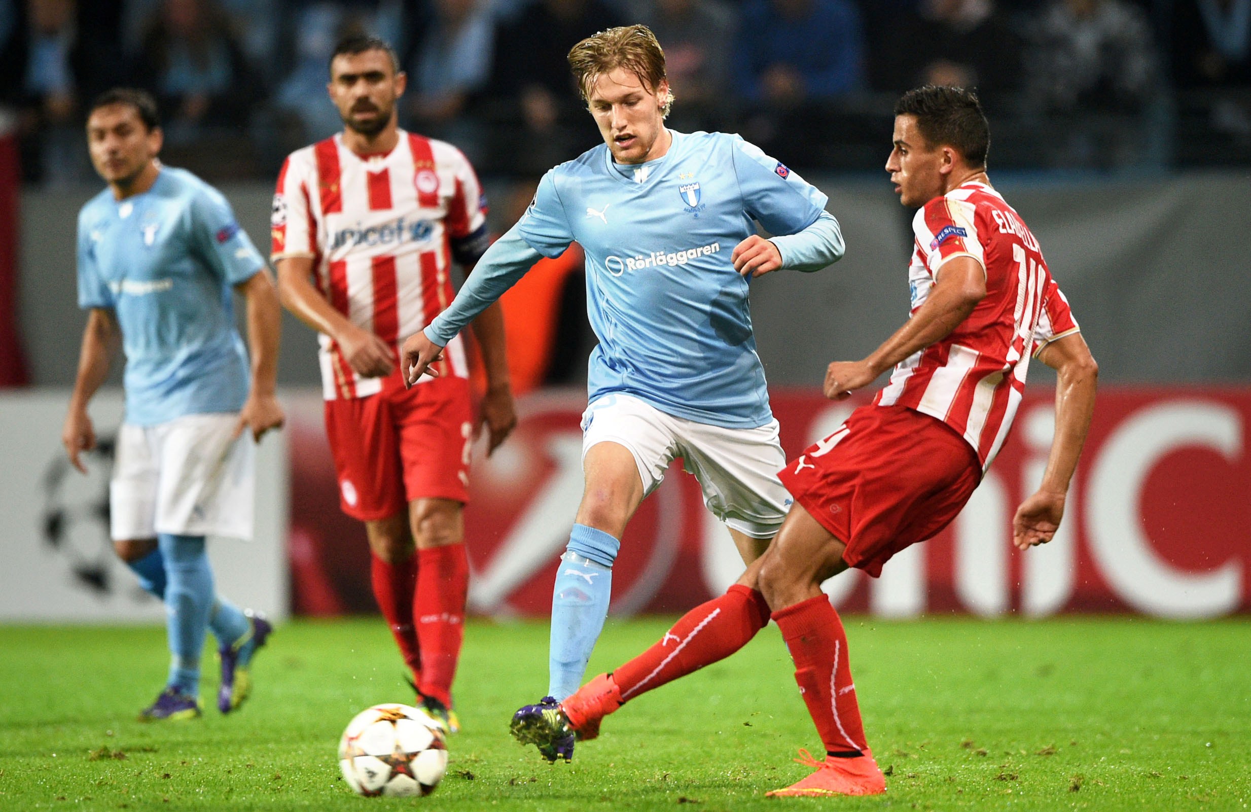 Στο τελευταίο ματς των ομίλων του UEFA Champions League, ο Θρύλος επικράτησε με 4-2 της Μάλμε, έφτασε τους 9 βαθμούς και κατέκτησε την 3η θέση, εξασφαλίζοντας την ευρωπαϊκή συμμετοχή και τον Φεβρουάριο του 2015, μέσω του UEFA Europa League. Ο Νταβίντ Φουστέρ, ήταν αυτός που άνοιξε το σκορ στο 22’ με κεφαλιά. Ο Κρόον είχε ισοφαρίσει στο 59’, ωστόσο η χαρά των Σουηδών δεν κράτησε για πολύ… Ο «μάγος Τσόρι» με ένα… κεραυνό έξω από την περιοχή έδωσε και πάλι το προβάδισμα στον Θρύλο. Στο 81’ ο Ρόζερμπεργκ ισοφάρισε και πάλι, αλλά τα γκολ των Μήτρογλου (87’) και Αφελάι (90’) έβαλαν τα πράγματα στην θέση τους, στέλνοντας παράλληλα τον Ολυμπιακό μας στους «32» του Europa League!