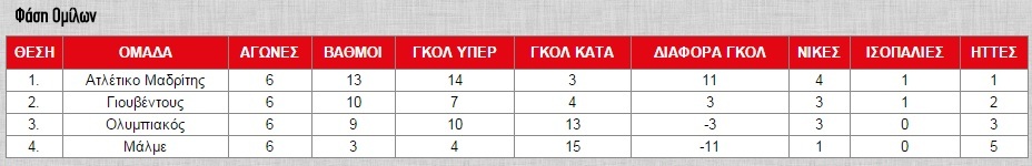 Ας θυμηθούμε, όμως, πως η ομάδα μας μέχρι την τελευταία στιγμή πάλεψε πέρσι, για να προκριθεί στην επόμενη φάση του θεσμού, αλλά τελικά κατέκτησε την 3η θέση του ομίλου του, τερματίζοντας πίσω από «μεγαθήρια» του ευρωπαϊκού ποδοσφαίρου. Γιουβέντους και Ατλέτικο Μαδρίτης πήραν τις δύο πρώτες θέσεις, παρόλα αυτά και οι δύο γνώρισαν την ήττα στο «Γ. Καραϊσκάκης», με τον Θρύλο να αποδεικνύει για ακόμα μια ευρωπαϊκή χρονιά πως ο «Ναός» του είναι το μεγάλο του όπλο! Από την κόκκινη… λάβα του Φαλήρου δεν ξέφυγε ούτε η Μάλμε, που γνώρισε την ήττα στην τελευταία αγωνιστική, που είχε ως αποτέλεσμα να τερματίσει τελευταία στον όμιλο. Στην συνέχεια, ο Ολυμπιακός ως τρίτος συνέχισε στο UEFA Europa League, όπου δεν τα κατάφερε κόντρα στην Ντνίπρο στην φάση των “32” της διοργάνωσης.
