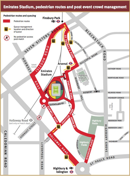 Ο σταθμός Άρσεναλ (Piccadilly Line) είναι ο πλησιέστερος σταθμός του μετρό, περίπου τρία λεπτά με τα πόδια μέχρι το γήπεδο. Finsbury Park (Victoria, Piccadilly Lines) και Highbury & Islington (γραμμή Victoria, γραμμής του Βόρειου Λονδίνου) απέχουν περίπου 10 λεπτά με τα πόδια.