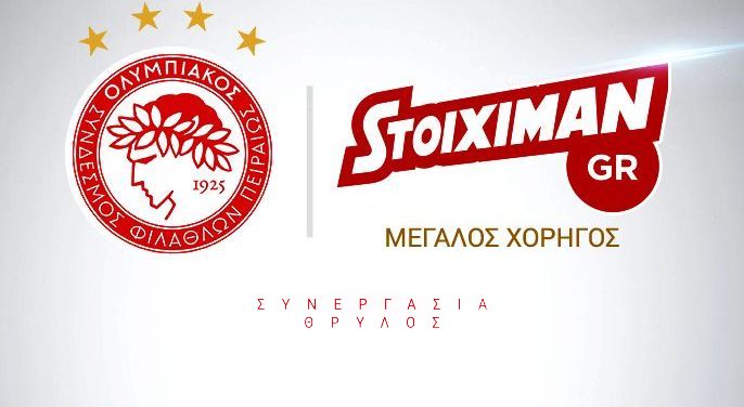 Η ΠΑΕ Ολυμπιακός και η Stoiximan ανακοινώνουν τη σύναψη χορηγικής συμφωνίας, με το Stoiximan.gr να αποτελεί τον Mεγάλο Xορηγό της Oμάδας του Ολυμπιακού. Η κορυφαία ελληνική εταιρεία στοιχηματισμού στο διαδίκτυο θα κοσμεί από αυτή την Κυριακή τη φανέλα του Ολυμπιακού.