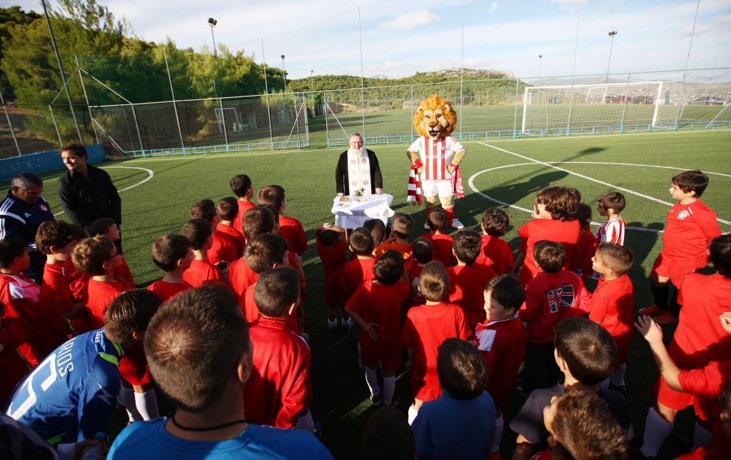 Μετά από τον καθιερωμένο Αγιασμό που τελέστηκε στις εγκαταστάσεις της Σχολής το απόγευμα της Παρασκευής ο επικεφαλής της Σχολής κ. Καλογεράκος σε συνεργασία με την Διεύθυνση Ακαδημίας του Ολυμπιακού είχαν ετοιμάσει μια μεγάλη έκπληξη σε παιδιά και γονείς! Ο Λεόνε εισέρχεται στο γήπεδο με τα παιδιά να τρέχουν να τον αγκαλιάσουν και να φωτογραφηθούν μαζί του! Το ίδιο έπραξαν και οι γονείς οι οποίοι συνεχάρησαν την Διεύθυνση της Σχολής για την ωραία της πρωτοβουλία.