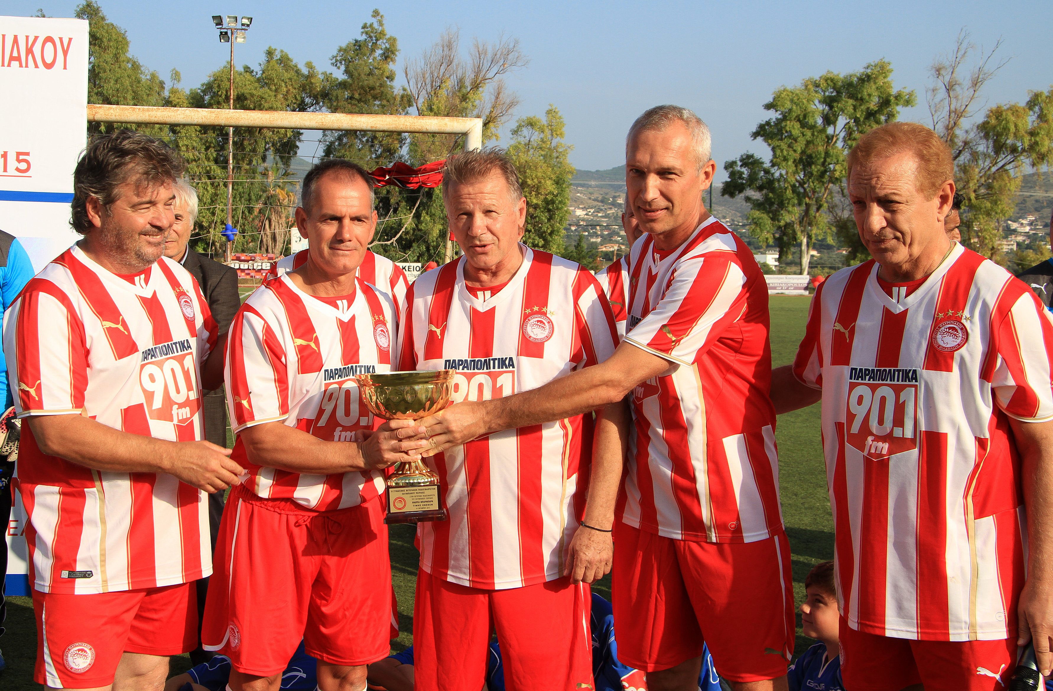 Κατά τη διάρκεια του αγώνα έγινε μάχη. Οι γηπεδούχοι προηγήθηκαν δύο φορές (1-0 και 2-1), όμως οι «ερυθρόλευκοι» αντεπιτέθηκαν με περίσσιο πάθος! Ο Λουτσιάνο πέτυχε το πρώτο (πέναλτι) και το τρίτο (σουτ) γκολ της ομάδας των βετεράνων και ο Θεόφιλος Καρασαββίδης (σουτ) το δεύτερο. Για τον Σαρωνικό βρήκαν δίχτυα ο Τσαλικίδης και Θεοδωρίδης.