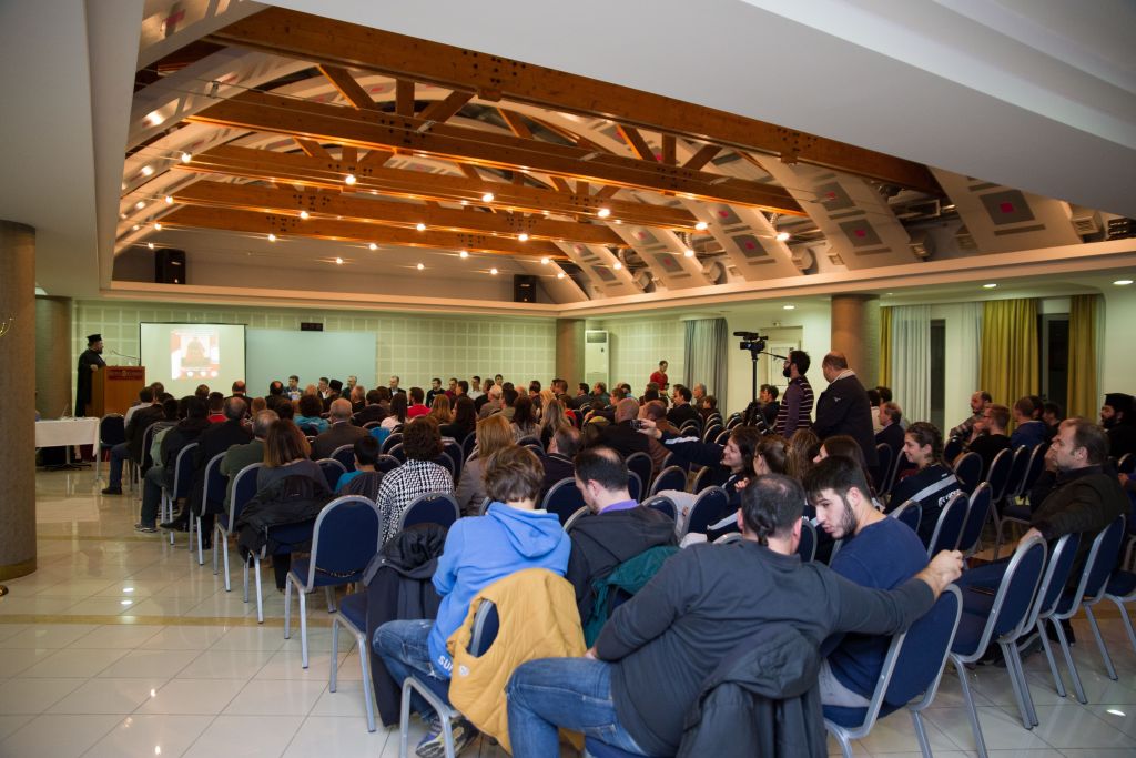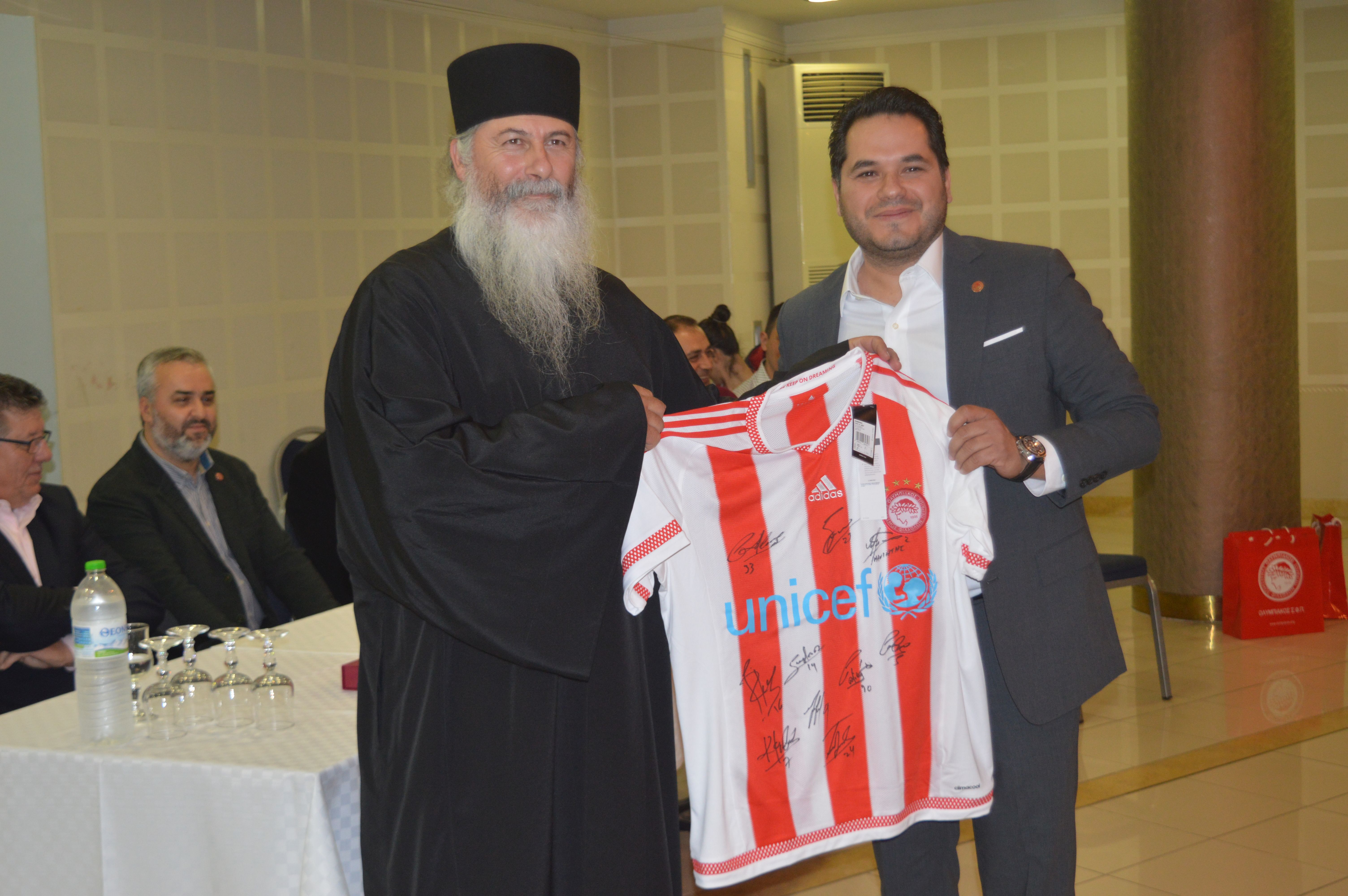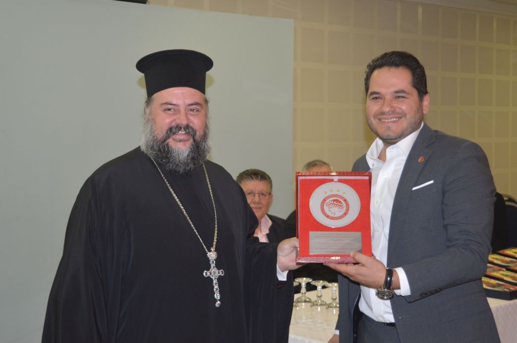 Ο πατέρας Ευάγγελος στον χαιρετισμό του γνωστοποίησε ότι πολλά χρόνια ήταν εφημέριος του Ιερού Ναού του Αγίου Νικολάου στον Πειραιά και εξήρε την σημαντική προσφορά τόσο του αείμνηστου Μιλτιάδη Μαρινάκη όσο και του σημερινού Προέδρου της ΠΑΕ Ολυμπιακός κ. Ευάγγελου Μαρινάκη στην εκκλησία και στους συνανθρώπους μας που χρήζουν βοηθείας.