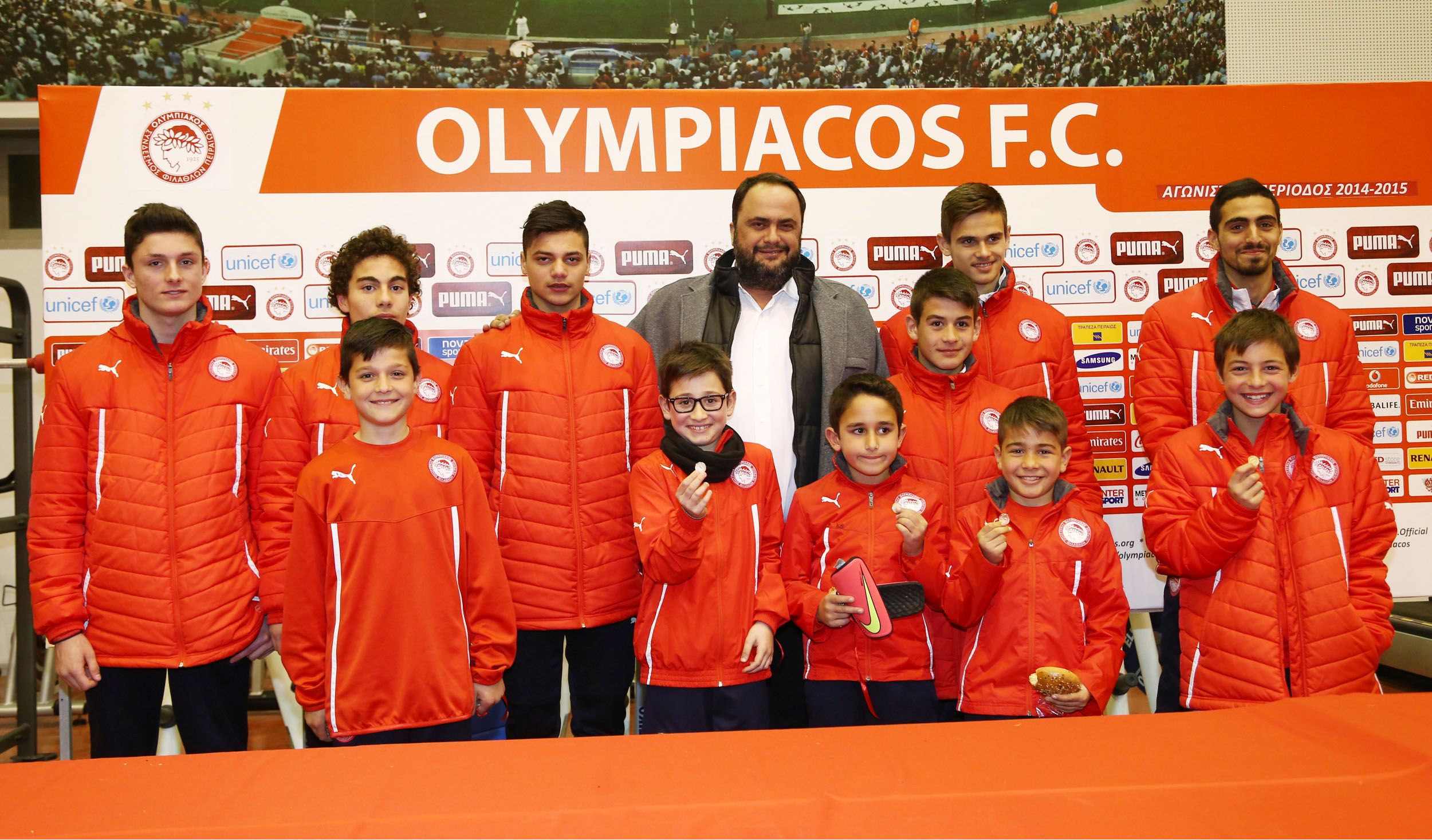 Στις αρχές του 2015 η Ακαδημία παρουσία του Προέδρου της ΠΑΕ Ολυμπιακός κ. Βαγγέλη Μαρινάκη έκοψε την πρωτοχρονιάτικη πίτα της σε μια πολύ ωραία εκδήλωση στο Προπονητικό Κέντρο Ρέντη. Ο κ. Μαρινάκης για άλλη μια φορά μέσα στο 2015 έδειξε με έργα και όχι με λόγια πως συνεχίζει να επενδύει στην Ακαδημία ανεβάζοντας την χρόνο με τον χρόνο επίπεδο!