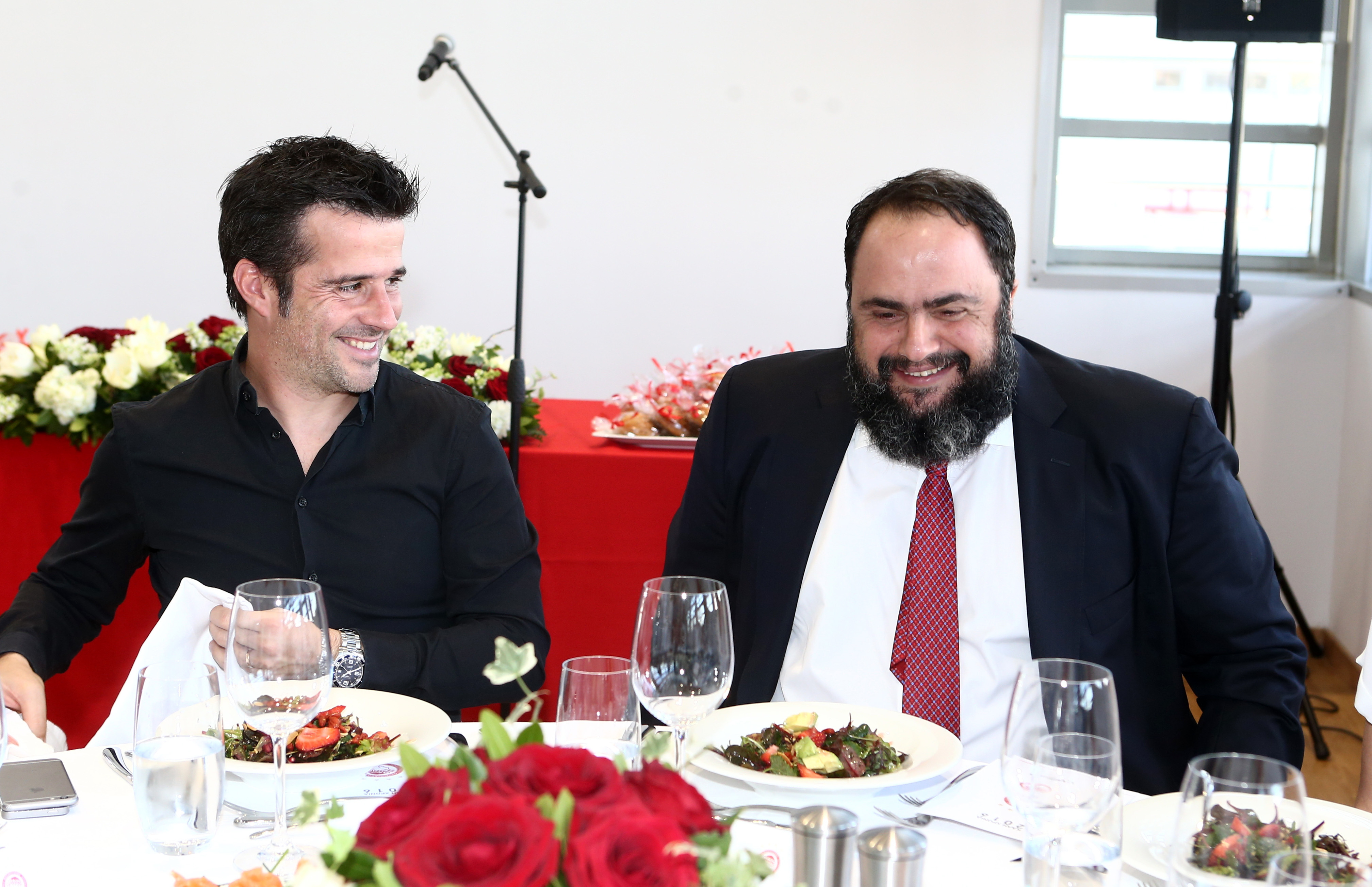 Μιλώντας ενώπιων σύσσωμου του ποδοσφαιρικού τμήματος και σε απόλυτα οικογενειακό κλίμα, ο Πρόεδρος του Ολυμπιακού εξέφρασε την ικανοποίησή του για τα όσα έχουν επιτευχθεί στο πρώτο μισό της σεζόν και συνεχάρη άπαντες γι’ αυτό. Παράλληλα δεν παρέλειψε να συμπληρώσει πως οι απαιτήσεις στην κορυφαία και πλέον λαοφιλή ελληνική ομάδα ήταν και παραμένουν πάντα υψηλές γι’ αυτό προσδοκά και ο ίδιος, όπως όλοι οι φίλαθλοί μας, την κατάκτηση ενός ακόμα νταμπλ και φυσικά μεγάλη προσπάθεια για ένα μακρύ ταξίδι στο UEFA Europa League.