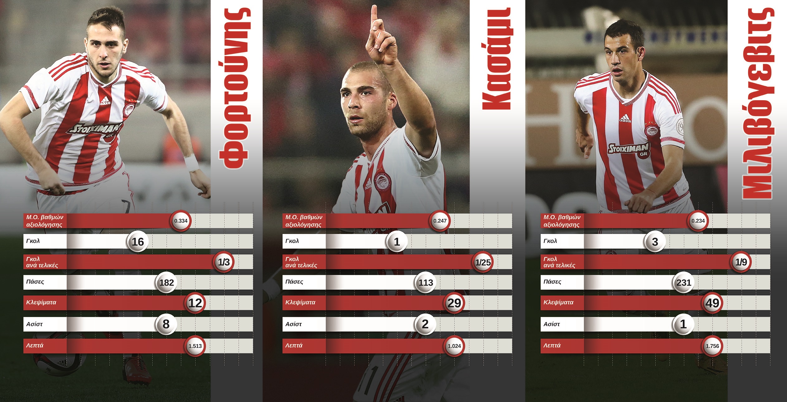 Ρίχνοντας μάλιστα κανείς μια ματιά στην επίσημη στατιστική υπηρεσία του πρωταθλήματος το επιβεβαιώνει. Ο Ολυμπιακός έχει σπουδαίους παίκτες που ξεχωρίζουν και κάνουν τη διαφορά στους αγώνες του. Κάθε άλλο παρά τυχαίο λοιπόν είναι ότι στην πιο σημαντική κατηγορία ατομικής στατιστικής evaluation index (σ.σ.: αξιολογούνται οι δράσεις ενός παίκτη με συνυπολογισμό του χρόνου συμμετοχής του) τις τρεις πρώτες θέσεις καταλαμβάνουν ισάριθμοι παίκτες των νταμπλούχων.