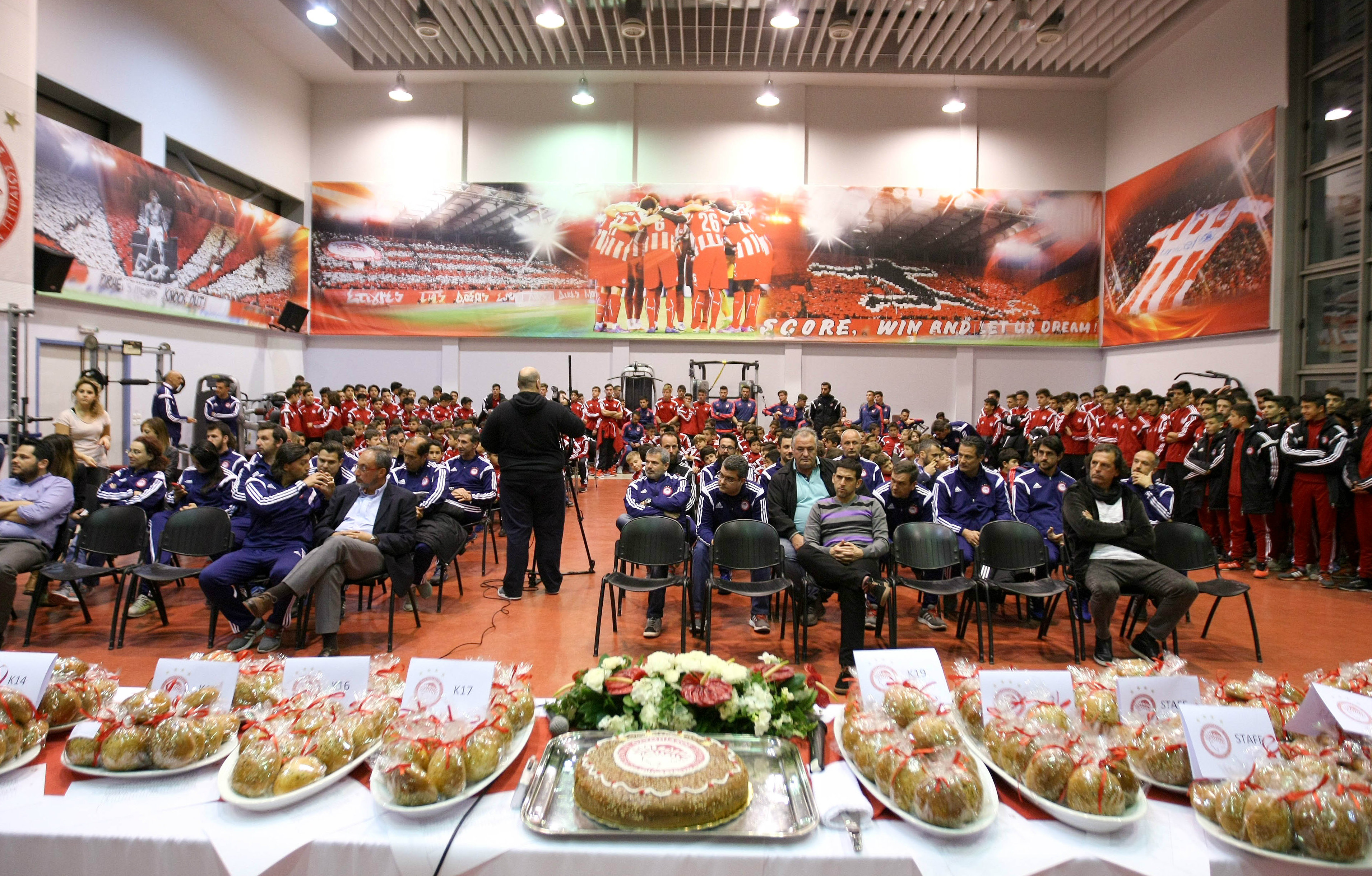Τα παιδιά που κέρδισαν τα φλουριά φωτογραφήθηκαν με τον κ. Παύλου ενώ στο τέλος της γιορτής όλοι μαζί φώναζαν «ΟΛΥΜΠΙΑΚΟΣ». Το φλουρί για την Κ-20 κέρδισε ο Γιάννης Λάτσι ο οποίος είναι στη Θεσσαλονίκη ως μέλος της πρώτης ομάδας για τον ημιτελικό Κυπέλλου με τον ΠΑΟΚ.