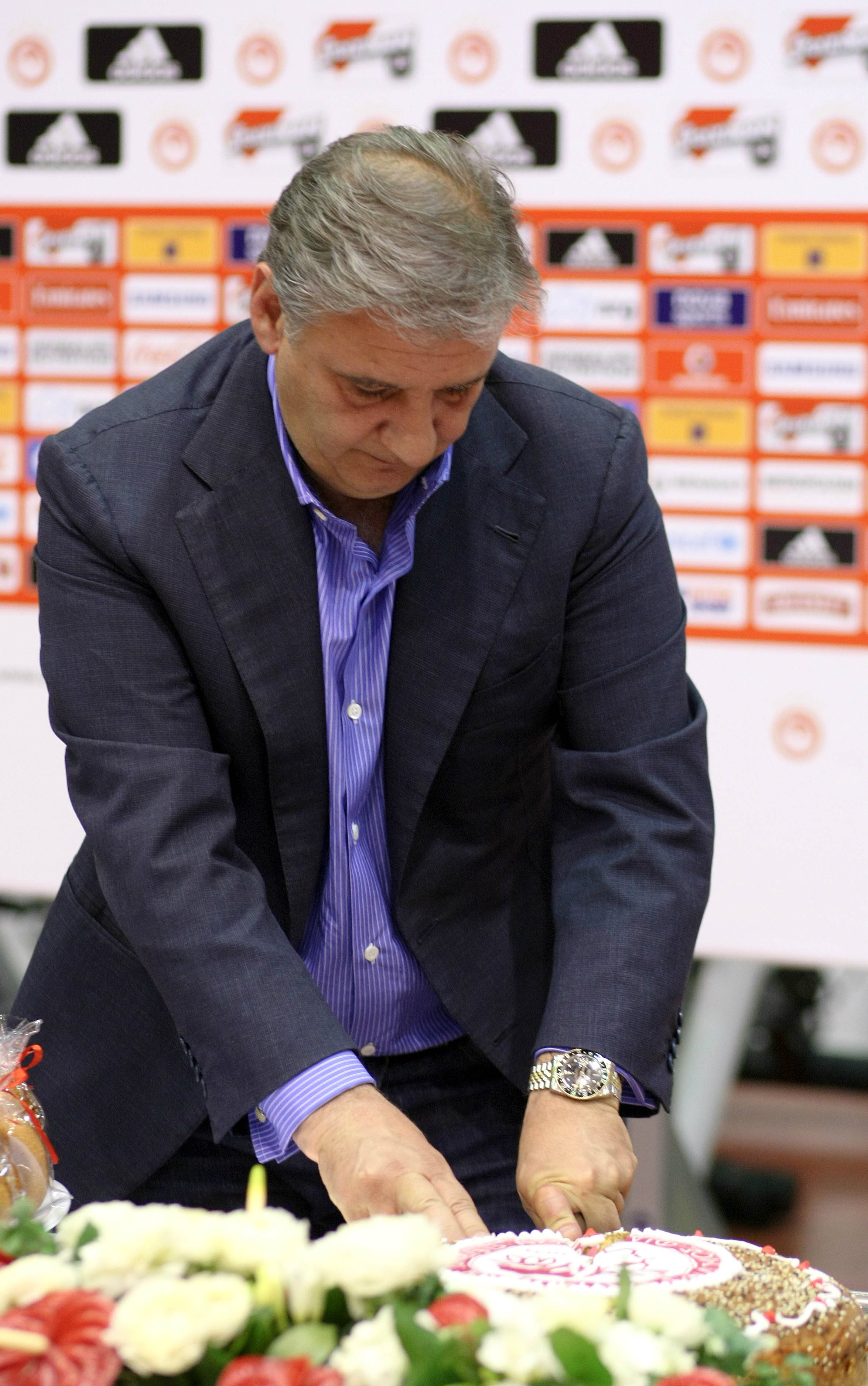 Ο Πρόεδρος και Διευθύνων Σύμβουλος της ΘΡΥΛΟΣ ΑΕ κ. Γιώργος Παύλου έκοψε την πίτα και ζήτησε απ’ όλους να κρατήσουν ψηλά τον Ολυμπιακό: «Καλή χρονιά με υγεία σε εσάς και στις οικογένειας σας. Να έχετε καλή πρόοδο και να πετύχετε όλους τους στόχους που έχετε βάλει για φέτος. Σήμερα δυστυχώς ο Πρόεδρος κ. Μαρινάκης δεν μπόρεσε να είναι μαζί μας. Θα είναι μαζί μας την επόμενη φορά για να κόψει εκείνος την πίτα. Όπως γνωρίζετε η φανέλα του φοράτε είναι πολύ βαριά. Πρέπει να εργάζεστε πολύ σκληρά για να μπορέσετε να την υπερασπίζεστε και να την τιμάτε σε κάθε αγώνα. Η χρονιά που έφυγε ήταν πολύ καλή γεμάτη επιτυχίες και τρόπαια και βλέπουμε ότι συνεχίζουμε πολύ δυνατά και φέτος. Η διοίκηση του Ολυμπιακού και ο Πρόεδρος μας κ. Μαρινάκης μας δίνει όλες τις δυνατότητες για να δουλέψουμε καλά και να πετύχουμε τους στόχους μας. Αυτό μετά εξαρτάται από το πόσο εσείς θα δουλέψετε και πόσο αγαπάτε αυτό που κάνετε».