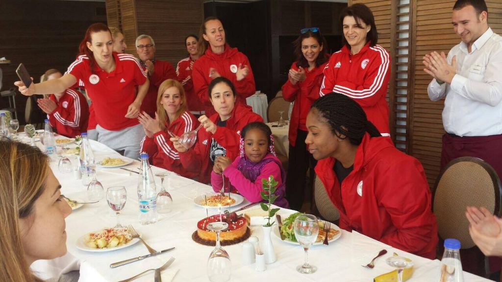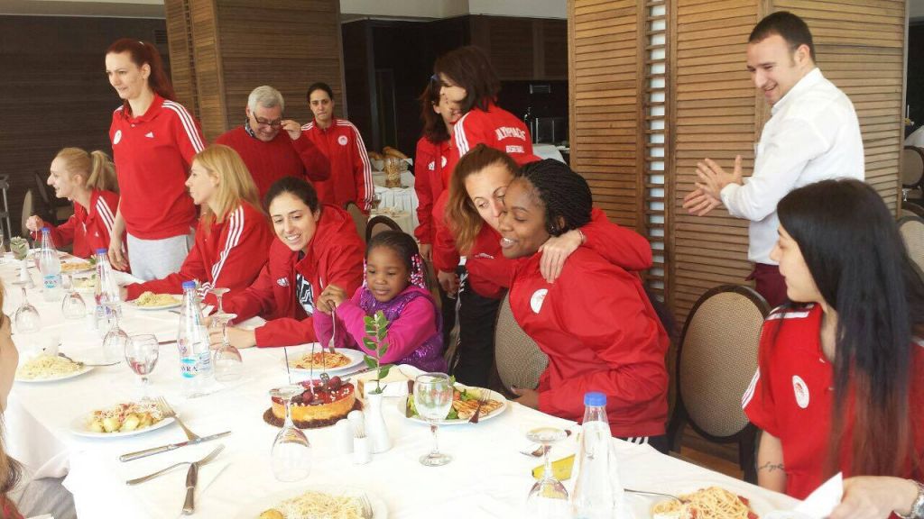Το μεσημέρι της Κυριακής, στις υπέροχες εγκαταστάσεις του ξενοδοχείου IONIAN BLUE της Λευκάδας που διέμενε η αποστολή του Ολυμπιακού, οι συναθλήτριες της Τζόνσον, σε συνεργασία με την… μικρή κόρη της, Ντέστινι, αλλά και το πάντα πρόθυμο και ευγενέστατο προσωπικό του ξενοδοχείου, οργάνωσαν στην Αμερικανίδα ένα μικρό πάρτι για τα γενέθλια της, αλλά και για το γούρι… που όπως φαίνεται έπιασε, με την Τζόνσον το βράδυ να είναι τριπλά χαρούμενη!