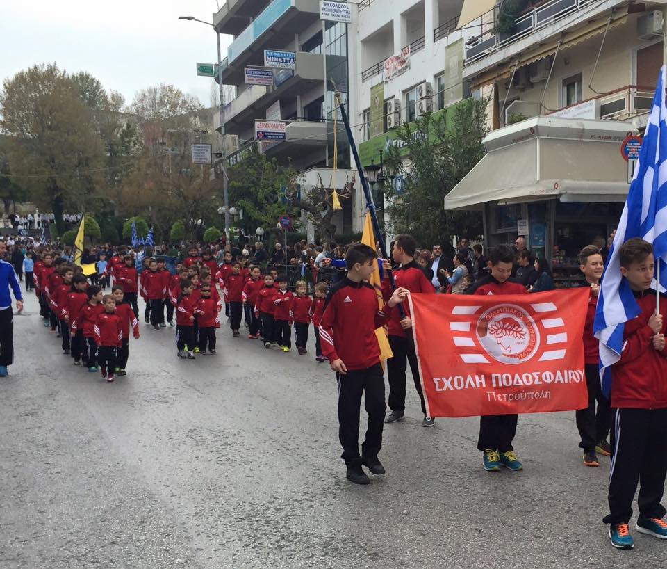 Περισσότεροι από 70 ποδοσφαιριστές της Ειρήνης Πετρούπολης, που έχει συνεργασία με τον Ολυμπιακό με σκοπό την ανάδειξη νέων ταλέντων παρελασαν στους κεντρικούς δρόμους της πόλης δίνοντας το παράδειγμα σ’ όλους.