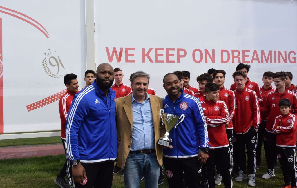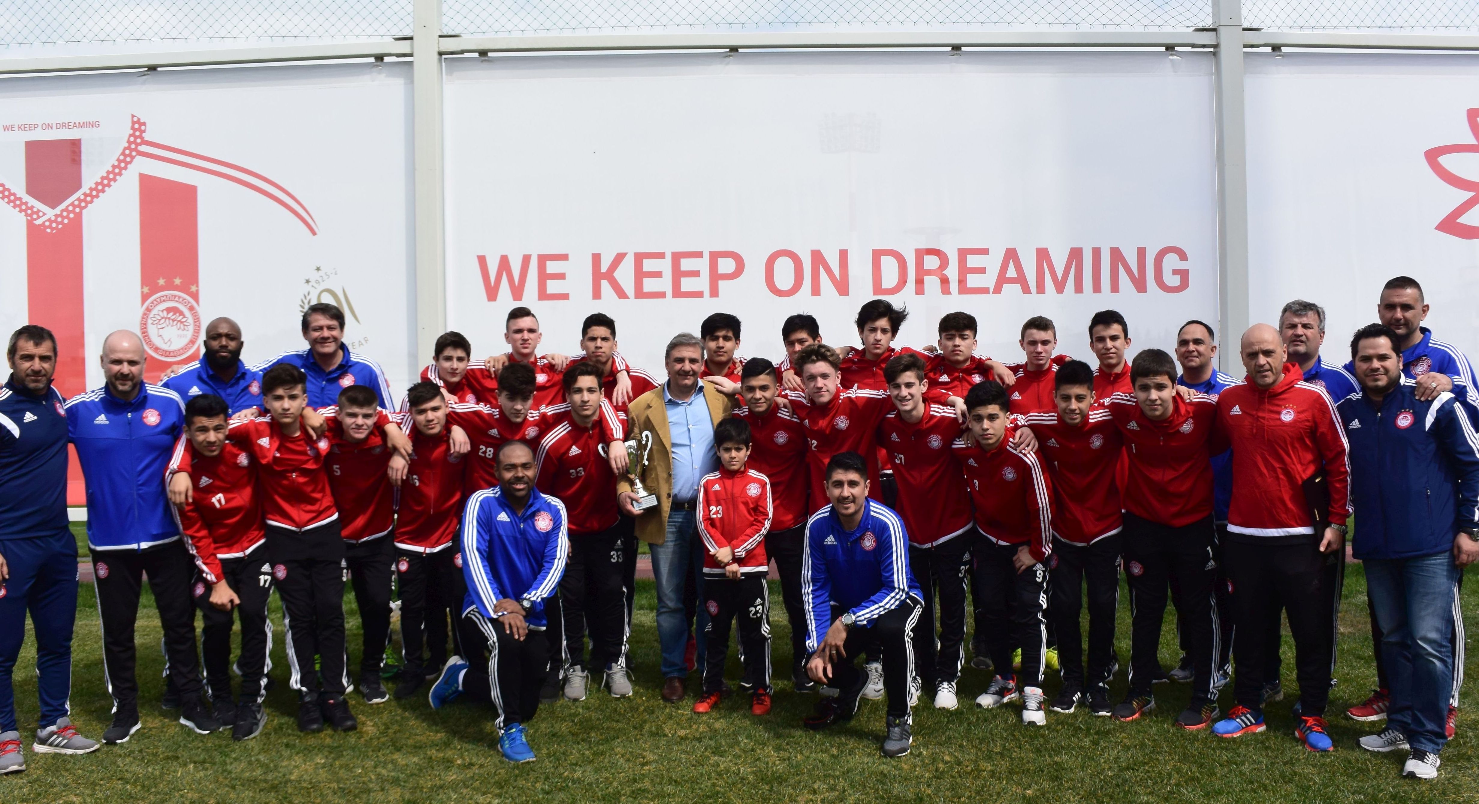 Ο κ. Ελευθεριάδης παρέλαβε από τρία παιδιά που κατέκτησαν το Εθνικό Πρωτάθλημα ΗΠΑ το 2015 μια φανέλα με τις υπογραφές των μελλών της ομάδας και ευχήθηκε και εκείνος να συνεχίσουν να δουλεύουν και να κάνουν υπερήφανο κάθε Ολυμπιακό ενώ ο κ. Νάνος πήρε πλακέτα από τον αρχηγό της ομάδας Ισμαέλ Κοντρέρας τονίζοντας την σημασία που έχει για την οικογένεια του Ολυμπιακού η επιτυχία της Σχολής στις ΗΠΑ.