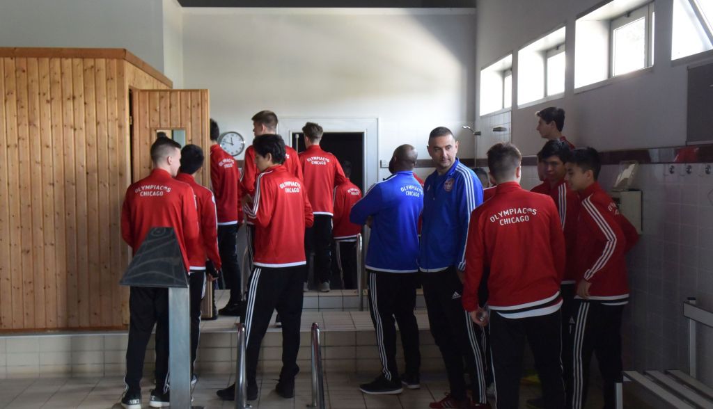 Εντυπωσιασμένα από το Προπονητικό Κέντρο του Ολυμπιακού στο Ρέντη έμειναν τα μέλη της Σχολής μας από το Σικάγο που πραγματοποιούν αυτές τις ημέρες επίσκεψη στην Ελλάδα.