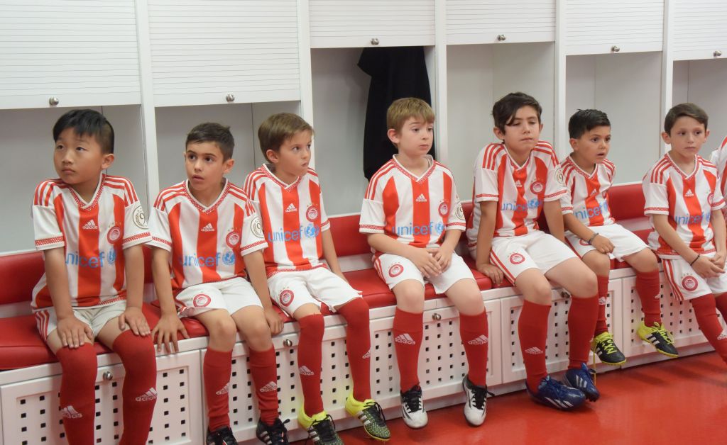 Τα παιδιά φωτογραφήθηκαν μπροστά στο σήμα της αγαπημένης τους ομάδας και στη συνέχεια επισκέφτηκαν το γυμναστήριο, την πισίνα, το ιατρείο, το εστιατόριο και φυσικά τα αποδυτήρια! Εκεί έμειναν μ’ ανοιχτό το στόμα και έτρεχαν να προλάβουν να καθίσουν στη θέση των ειδώλων τους!