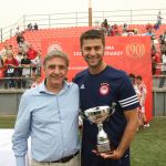 Ο κ. Κεραμιδάς που μαζί με τα παιδιά της Σχολής συγκίνησε τους πάντες με την αφιέρωση των τίτλων στον μικρό Γιώργο Ράπτη που εξακολουθεί να νοσηλεύεται με σοβαρό πρόβλημα υγείας σε νοσοκομείο της Γερμανίας, μιλώντας για την πρόοδο της Σχολής του αλλά και για την συμβολή του Ολυμπιακού σημείωσε: “Είμαστε πολλά χρόνια στο ποδόσφαιρο και προσπαθούμε να μαθαίνουμε στα παιδιά τις βασικές αρχές τους αλλά πάνω απ’ όλα θέλουμε να είναι σωστοί άνθρωποι που θα προσφέρουν στον συνάνθρωπο τους. Το ποδόσφαιρο μας δίνει συνεχώς μαθήματα ζωής. Με τα παιδιά αυτά ζούμε από το πρωί έως το βράδυ. Είναι η οικογένεια μας. Είναι το μέλλον μας. Αξίζουν κάθε θυσία. Είμαστε όλοι μας υπερήφανοι που είμαστε μέλη της οικογένειας του Ολυμπιακού. Ενός συλλόγου που επενδύει συνεχώς στις Σχολές και την Ακαδημία του και μας δίνει την δυνατότητα να βλέπουμε τα παιδιά μας να προοδεύουν και να τα καμαρώνουμε και εμείς και οι γονείς τους. Δυο παιδιά που έχουν ξεκινήσει από την Σχολή μας ο Σφύρλας και ο Βοϊδονικόλας στέφτηκαν φέτος Πρωταθλητές Ελλάδος στους Παίδες. Πως να μην καμαρώνουμε γι’ αυτά τα παιδιά και για τα υπόλοιπα που είναι μέλη της Ακαδημίας. Είναι η αναγνώριση της δουλειάς της Σχολής μας. Βέβαια η δουλειά αυτή δεν θα είχει το ίδιο αποτέλεσμα εάν δεν ήμασταν στον Ολυμπιακό. Θέλω ν’ ευχαριστήσω τον κ. Παύλου γιατί είναι συνεχώς δίπλα μας και να μας κάνει τα όνειρα μας πραγματικότητα. Ένα ευχαριστώ είναι λίγο. Πολλά μπράβο αξίζουν και στον κ. Νάνο που δεν μας αφήνει ημέρα χωρίς να σκεφτούμε ένα καλύτερο αύριο”.
