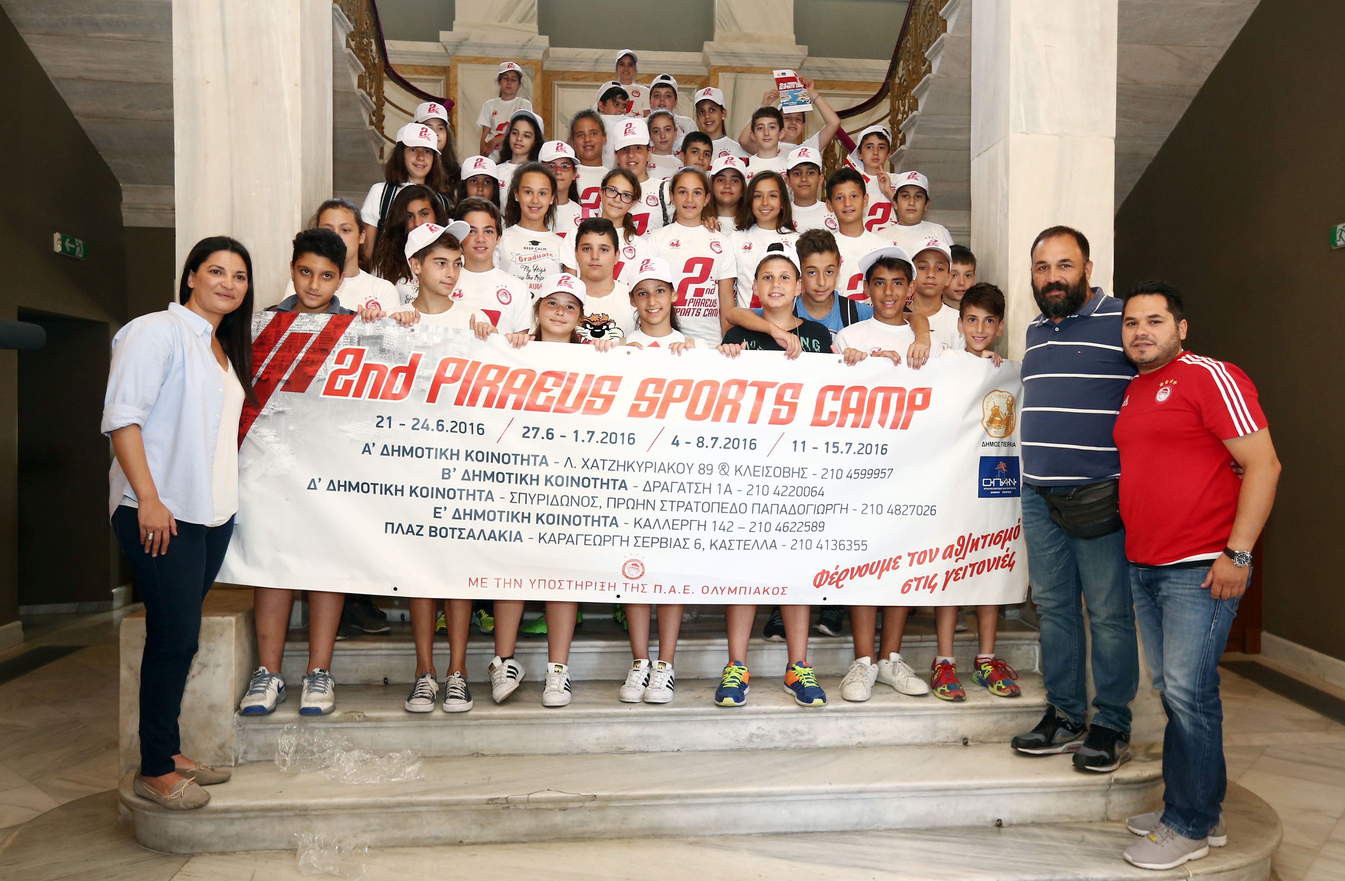 Το 2ο Piraeus Sports Camp ξεκινάει στις 21 Ιουνίου και θα διαρκέσει έως τις 15 Ιουλίου. Για τέσσερεις εβδομάδες, σε τέσσερεις Δημοτικές Κοινότητες της πόλης, τα παιδιά θα μάθουν τα μυστικά του ποδοσφαίρου, της κολύμβησης, του μπάσκετ, του Βόλεϊ, του ποδοσφαίρου σάλας, ενώ θα συμμετάσχουν και σε παιδαγωγικά παιχνίδια.