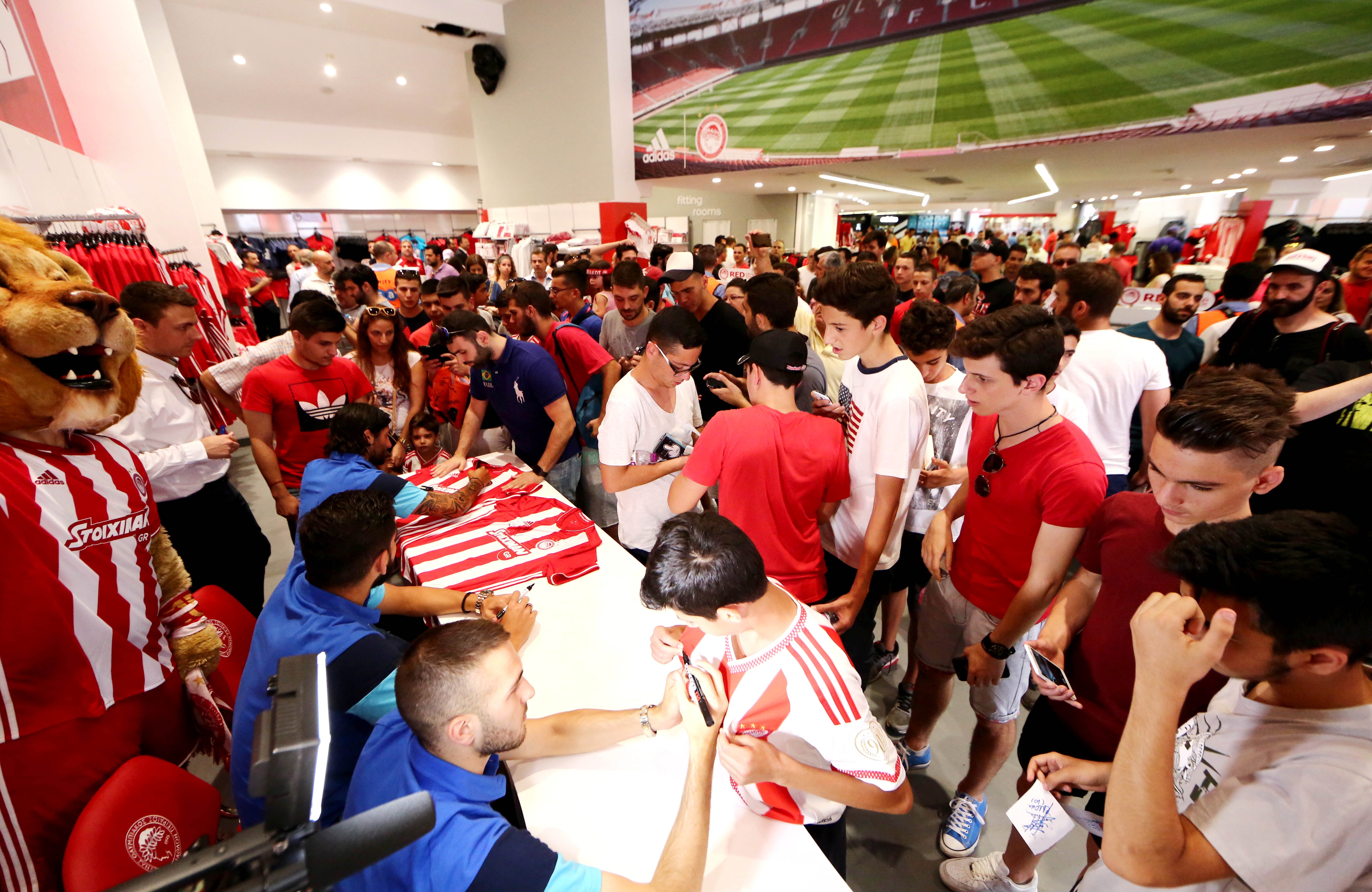 Κι αυτό επειδή με το πέρας της εκδήλωσης για την παρουσίαση της νέας φανέλας οι Αλεχάντρο Ντομίνγκεζ, Δημήτρης Σιόβας και Κώστας Φορτούνης βρέθηκαν εκεί για να υπογράψουν αυτόγραφα στις νέες εμφανίσεις αλλά και τα υπόλοιπα προϊόντα και να φωτογραφηθούν με τον κόσμο.