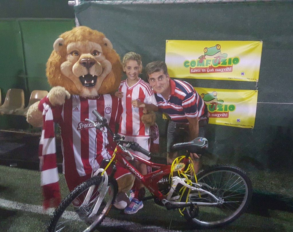 Η μασκότ του Ολυμπιακού, το θρυλικό λιοντάρι, ταξίδεψε στην Ηλεία για να δώσει το παρών στην τελετή για να βραβεύσει και να φωτογραφηθεί με τα παιδιά και τους μεγάλους.