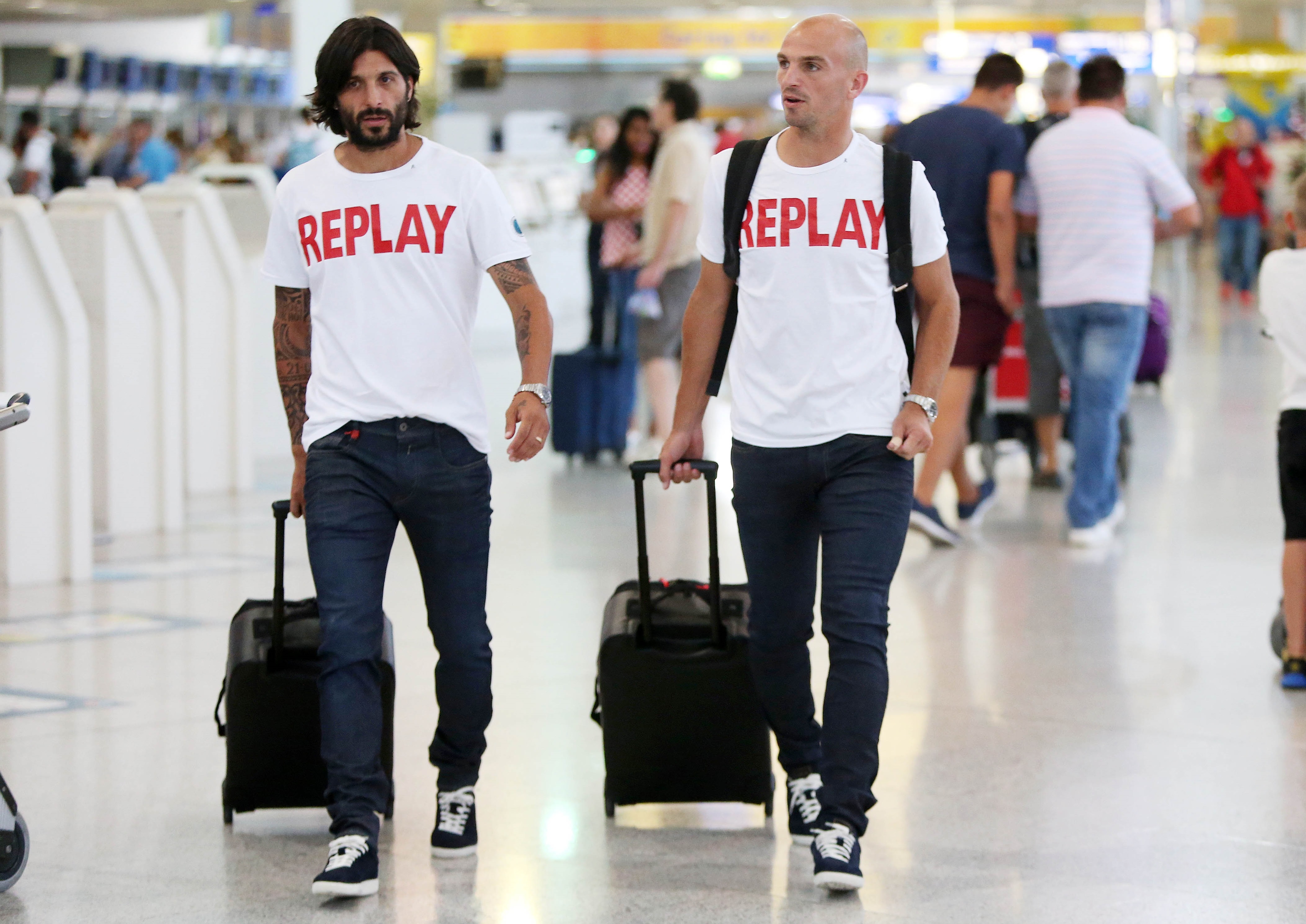Οι παίκτες και τα στελέχη του Ολυμπιακού ταξίδεψαν με την νέα Casual ενδυμασία της ομάδας για την αθλητική σεζόν 2016/2017 με την υπογραφή της REPLAY, της διάσημης Ιταλικής εταιρίας παγκοσμίως γνωστής για τα jeans και τα είδη smart casual ενδυσης.