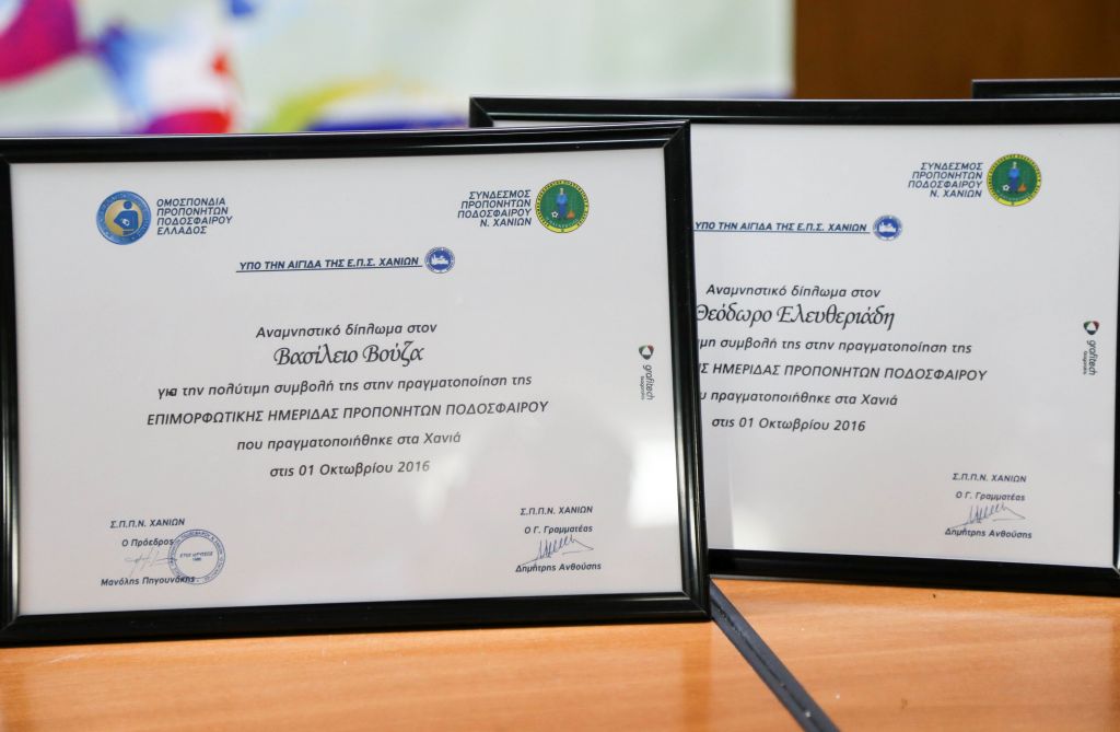 Άκρως επιτυχημένη ήταν η επιμορφωτική ημερίδα που πραγματοποιήθηκε από τονΣύνδεσμο Προπονητών Ποδοσφαίρου Χανίων “Ο Παγκρήτιος” σε συνεργασία με την ΕΠΣ Χανίων το πρωί του Σαββάτου στην αίθουσα συνεδριάσεων της ΕΠΣ στα Χανιά.