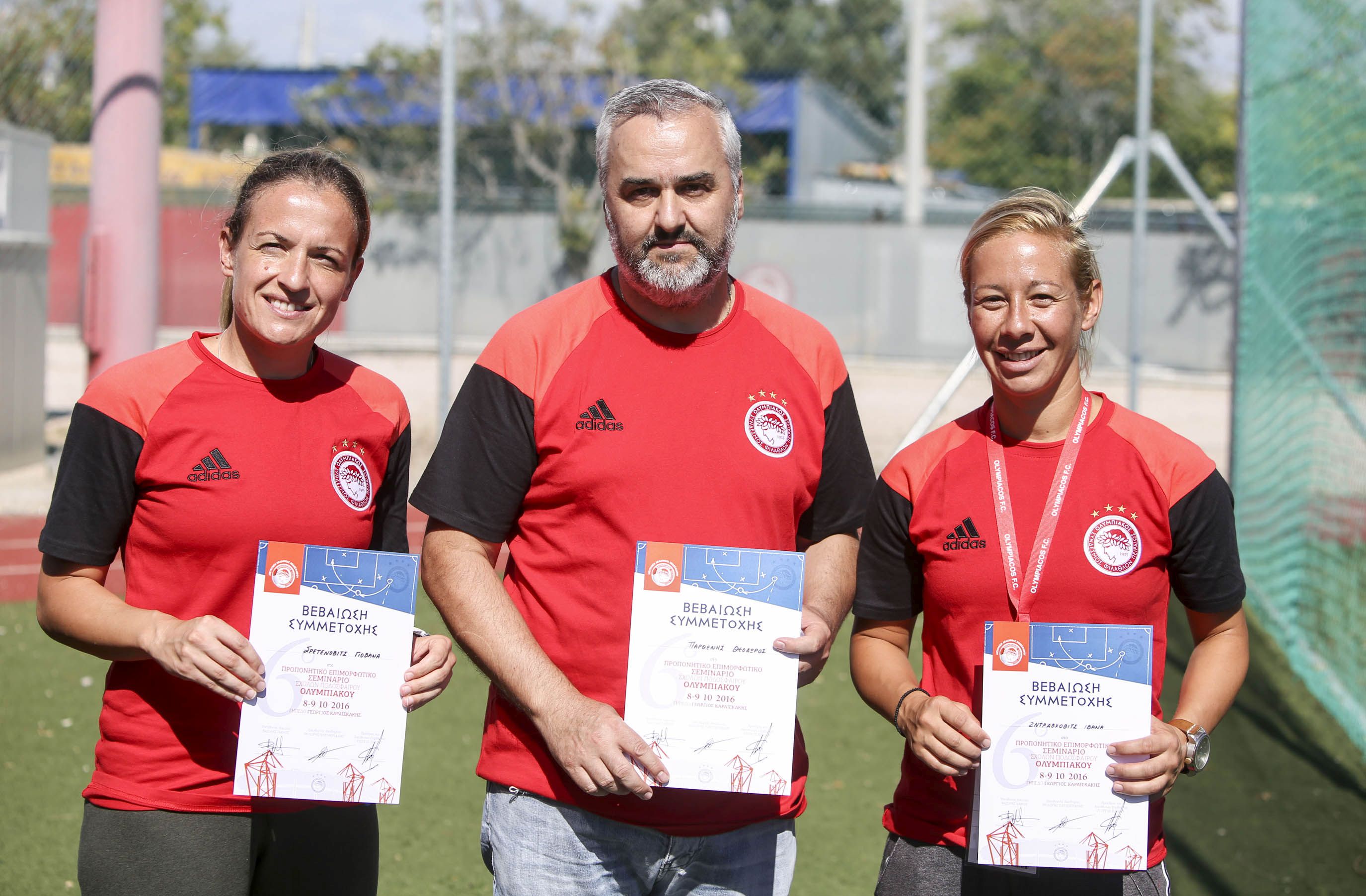 Άπαντες παρέλαβαν κατά την είσοδο τους στο γήπεδο την διαπίστευση τους και φυσικά την μπλούζα του Σεμιναρίου από την Adidas. Στο περιθώριο της πρώτης ημέρας ο Σύνδεσμος Βετεράνων Ποδοσφαιριστών του Ολυμπιακού δια του Γενικού Γραμματέα του κ. Αντώνη Γλύκα βράβευσε τους Βετεράνους του Ολυμπιακού που εργάζονται στην Ακαδημία και στις Σχολές αλλά και τους Θόδωρο Ελευθεριάδη και Χρήστο Θέο για την προσφορά τους.
